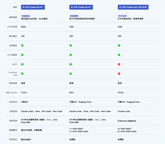 - KAT-Coder-Air V1:轻量免费版,助力开发者高效编码;