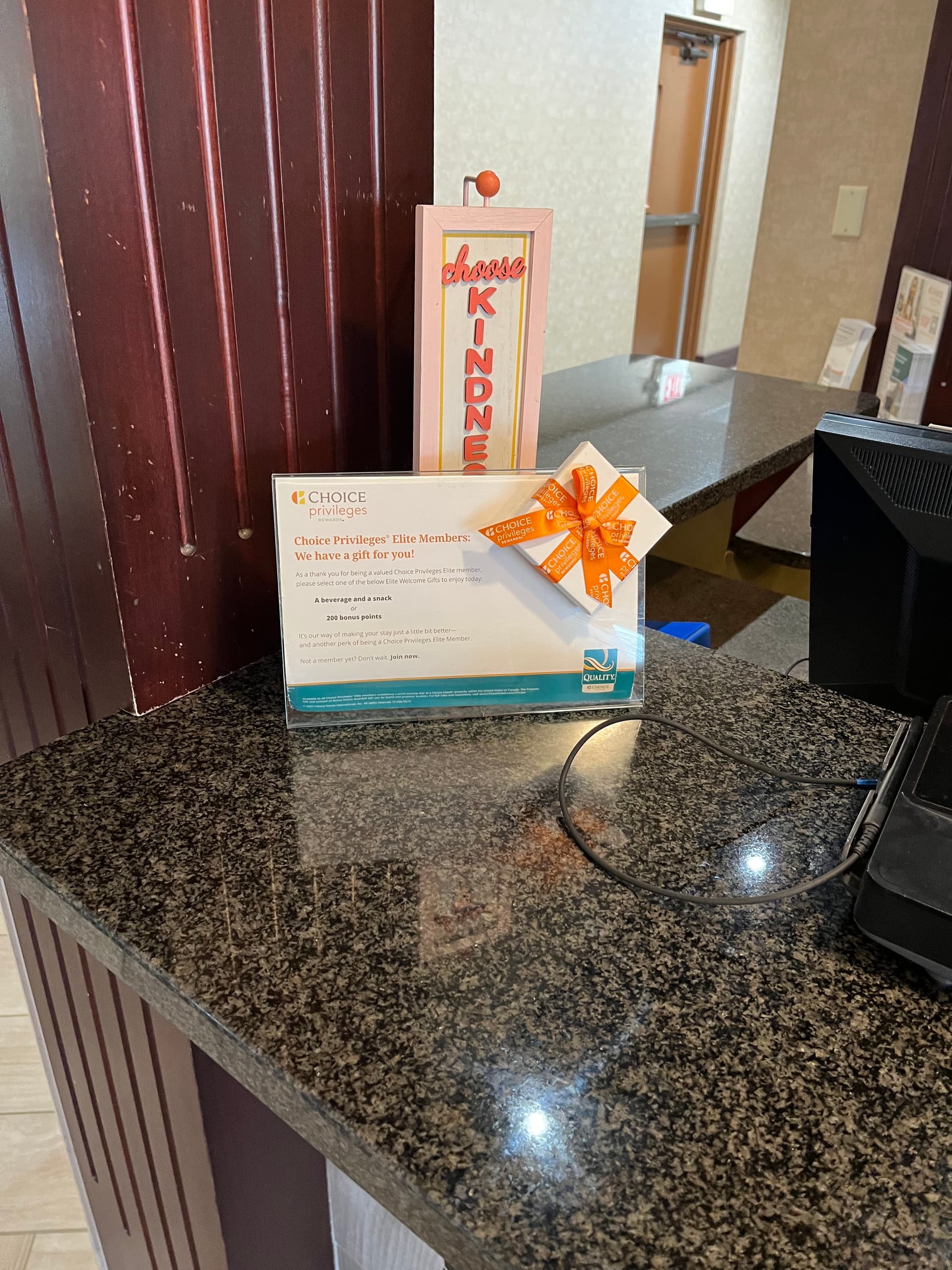 路过随便住了晚quality inn,想不到choice 还真有认真落实欢迎礼 ![]()