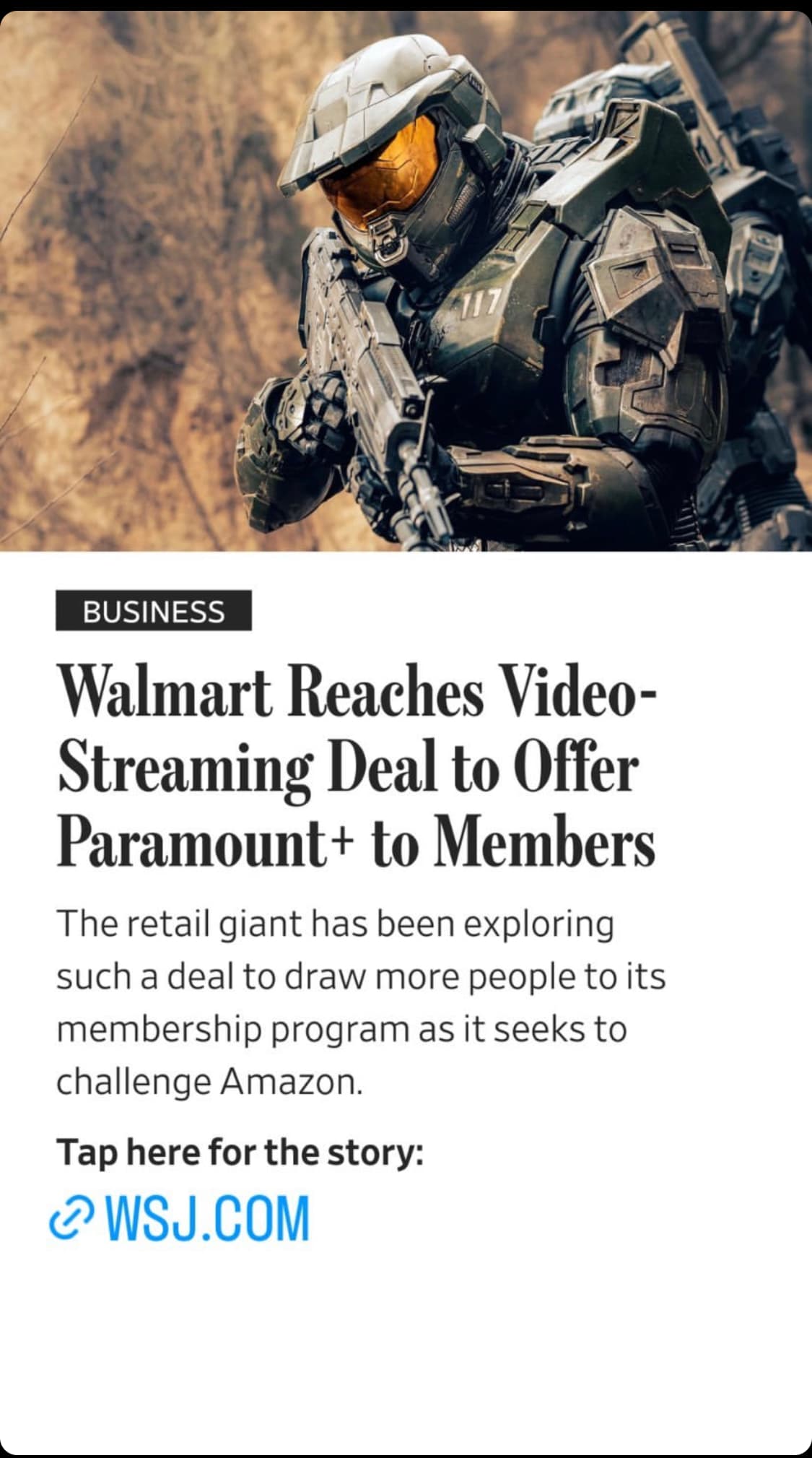 马逊买了MGM, 沃尔玛不会要买派拉蒙吧?