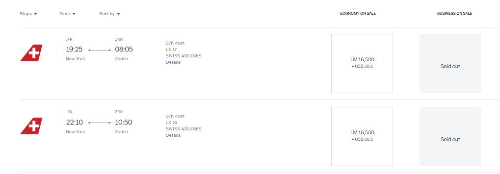 想请教下为什么我搜纽约到苏黎世的机票就还是29.5K呀