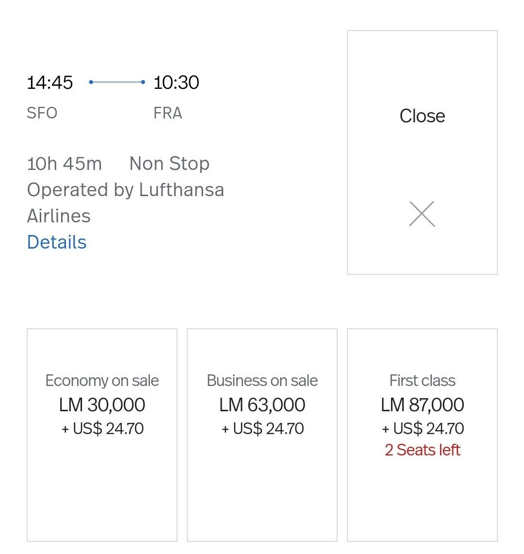 Lufthansa First Class伙伴票是出发前两周才能出,availability (当然)不是很经常看到。但其他去欧洲的线不受这个rule影响