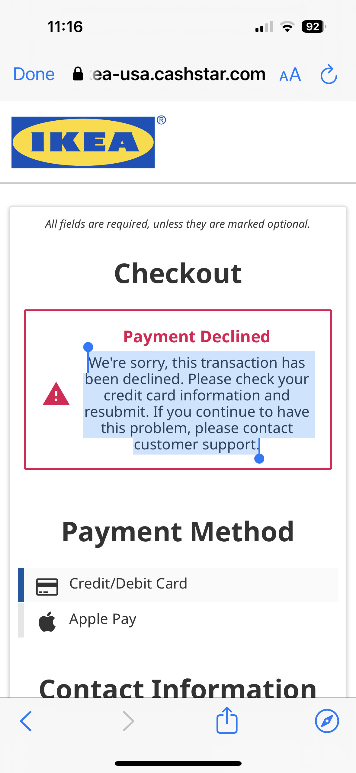 Thank you for contacting IKEA Gift Card Support. We apologize for any inconvenience this might have caused. We are working around the clock to bring the website working as usual. Please allow us the next 24-48 hours to complete this technical review, if you are in need to purchase a gift card, we recommend locating the nearest store to get a physical card. Thank you for your understanding.