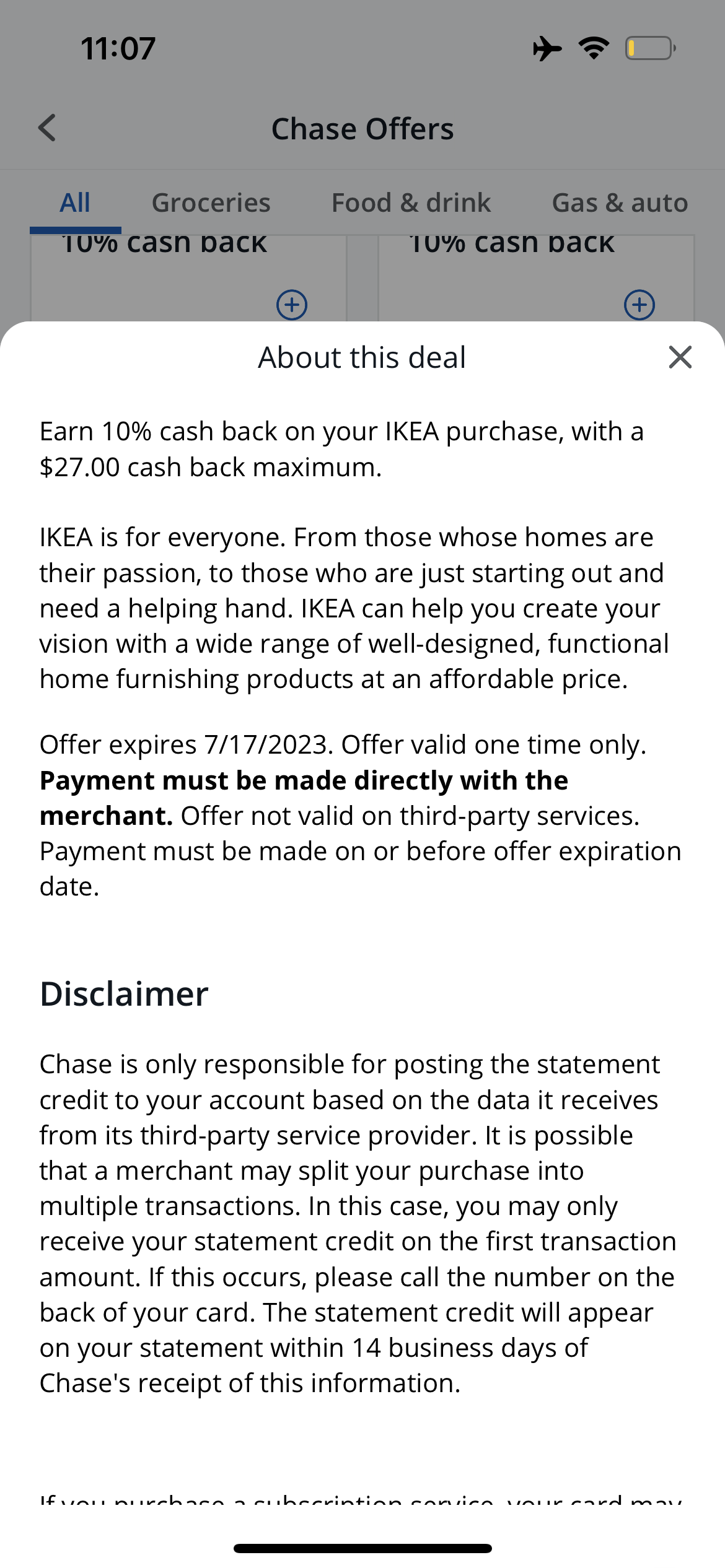 不能,chase offer是要在宜家买东西,这个是第三方卖gc的网站