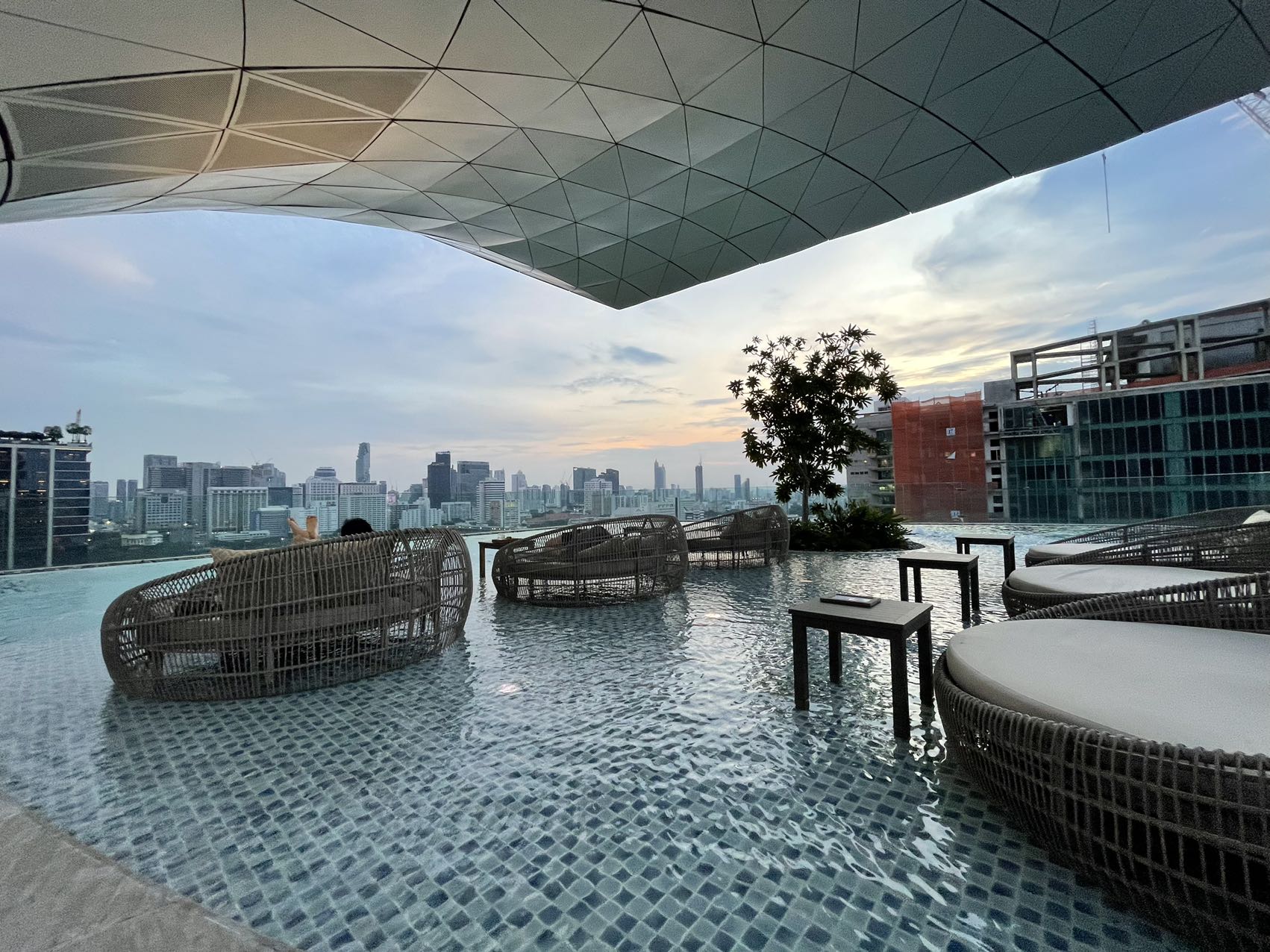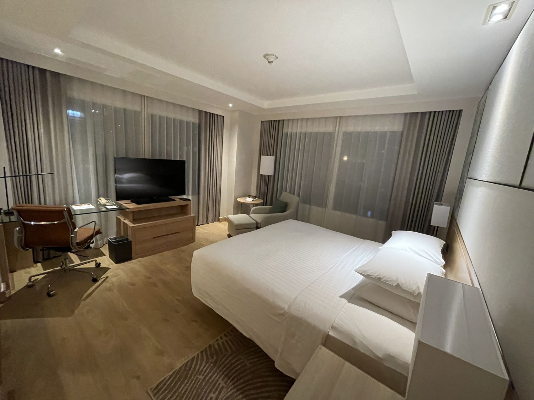 BKK机场晚上11点入境没人排队,用evisa很快就通过了。机场ATM用Schwab卡取了点现金,收了6刀交易费,坐等月底退还~取了行李之后打Grab到市区,第一晚先在Courtyard Bangkok过夜,给的是corner room。