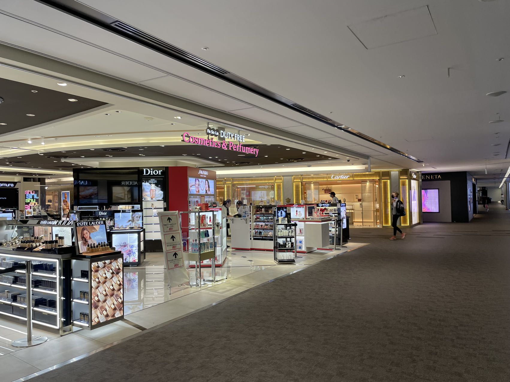 NRT机场大部分店铺都关门了,一些大牌和连锁美妆还开着。Terminal 2的JAL在satellite building的lounge从2020年就一直关闭,main building的business和first class lounge是开的,进门左手是first class lounge,右手是business class lounge。