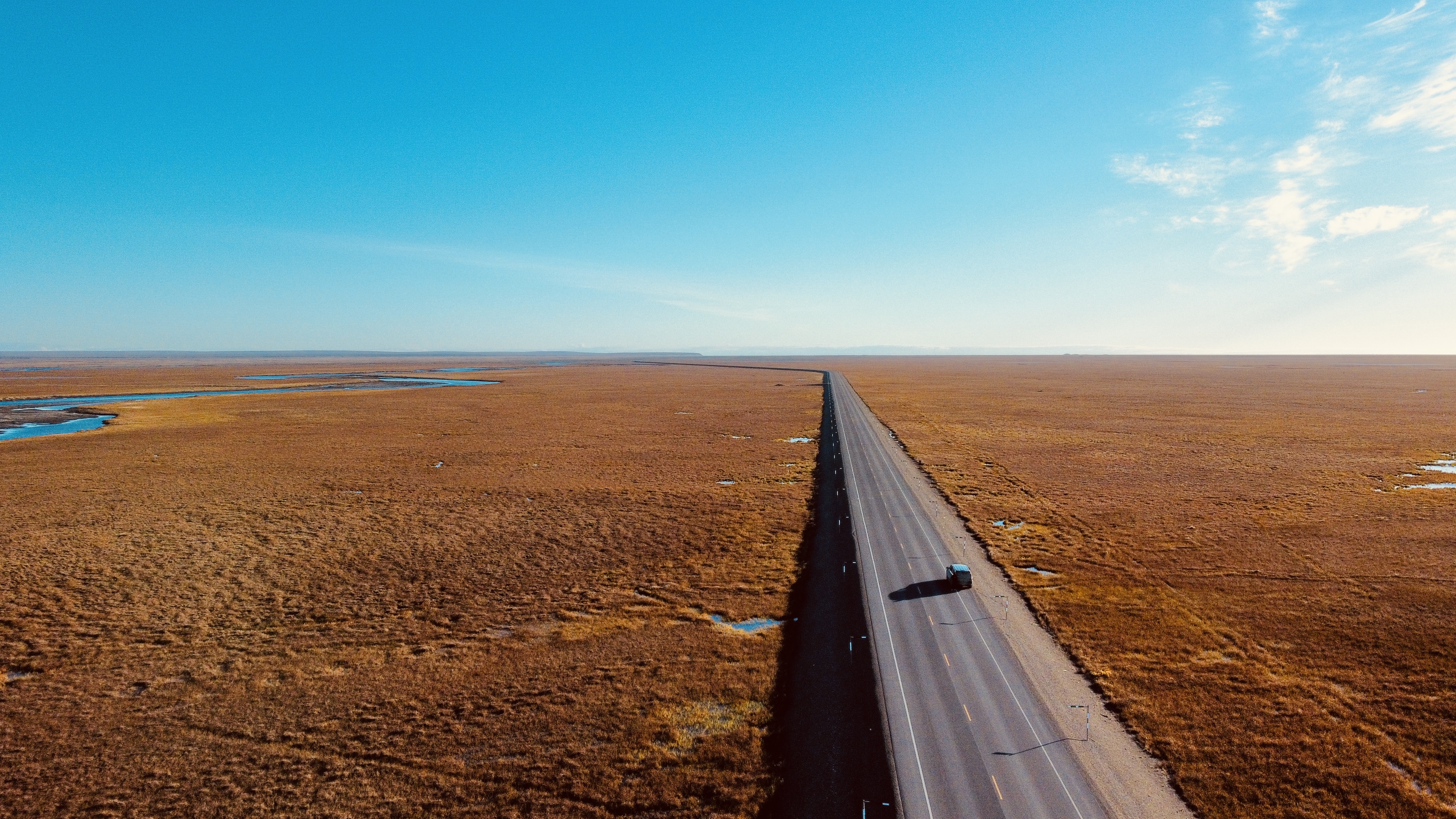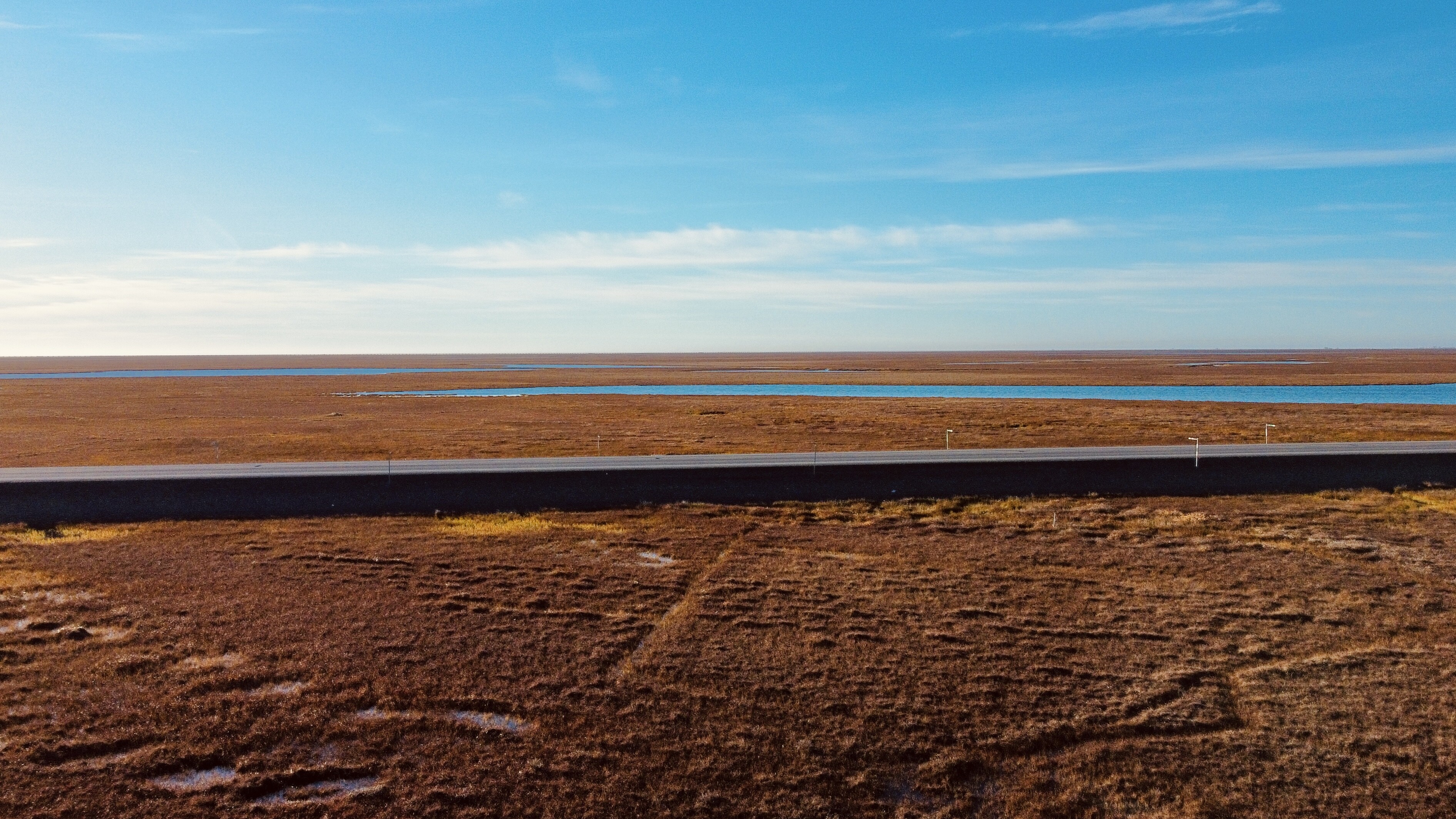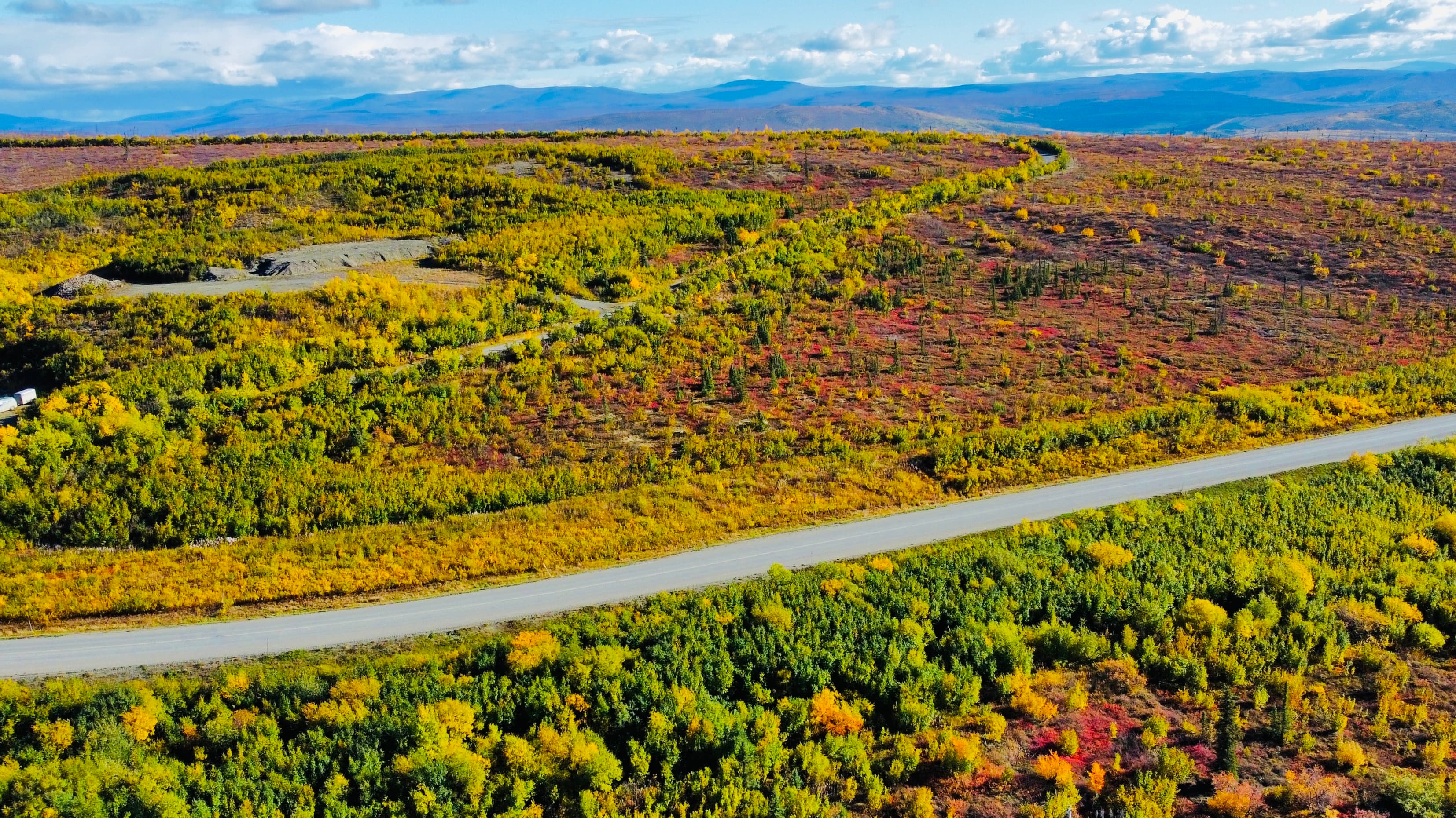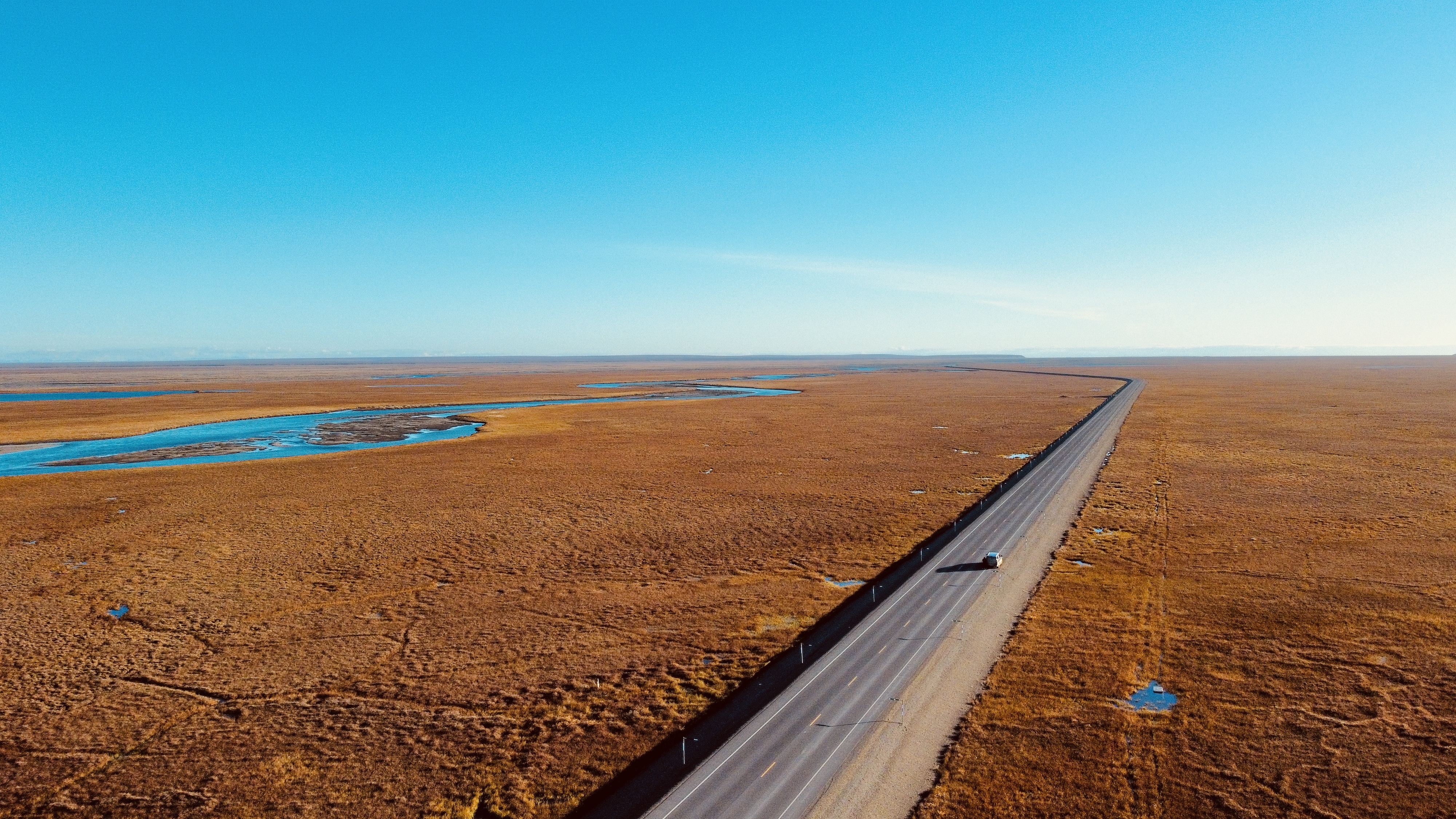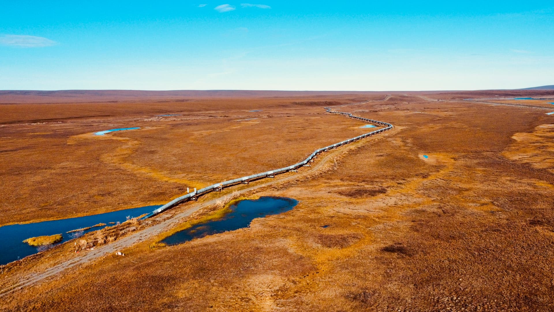 一张无人机俯拍的地貌,Alaska Pipeline依然在一路向北延伸。