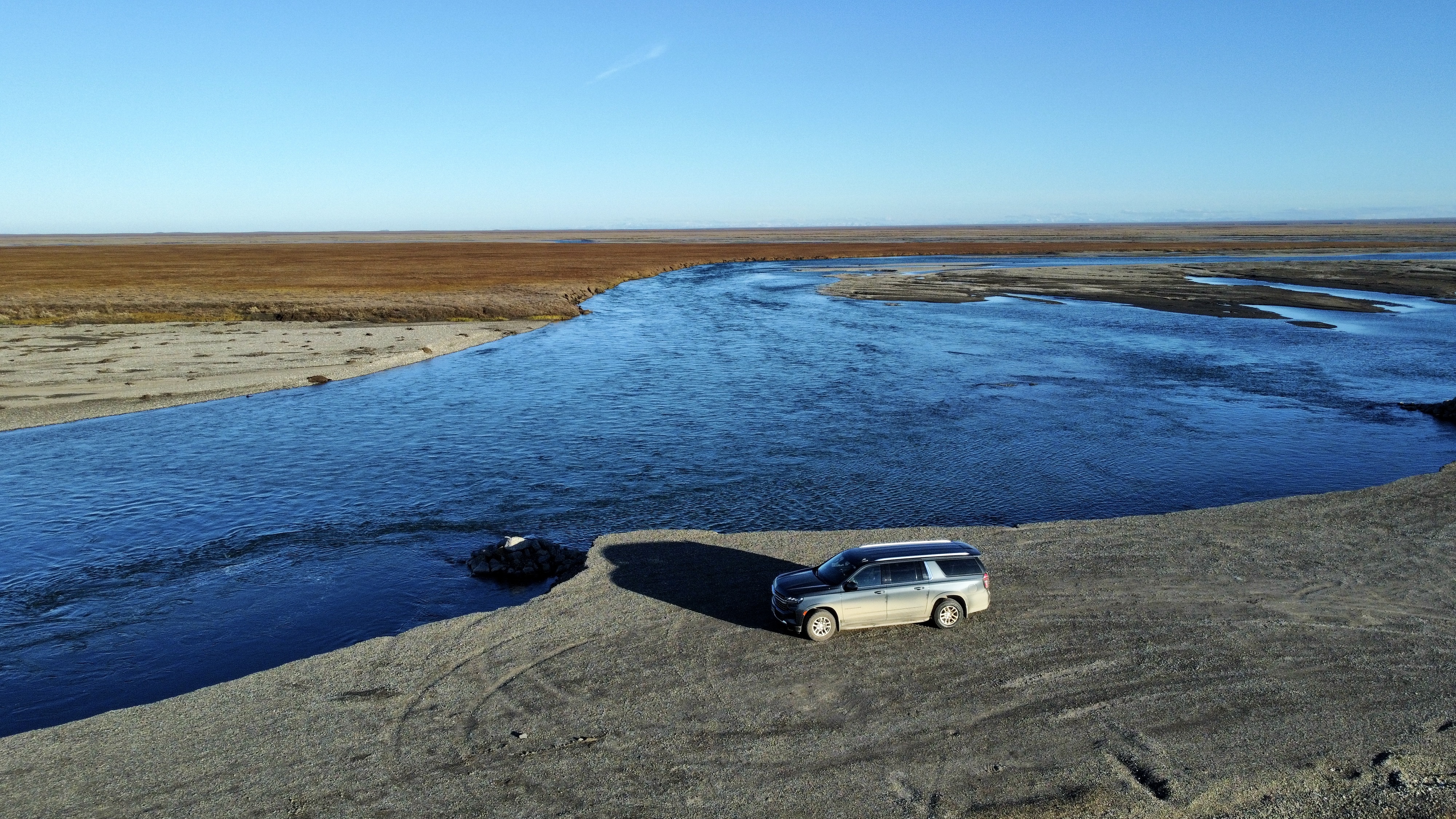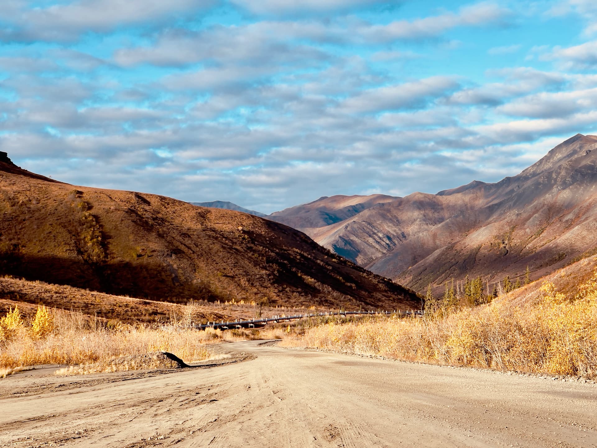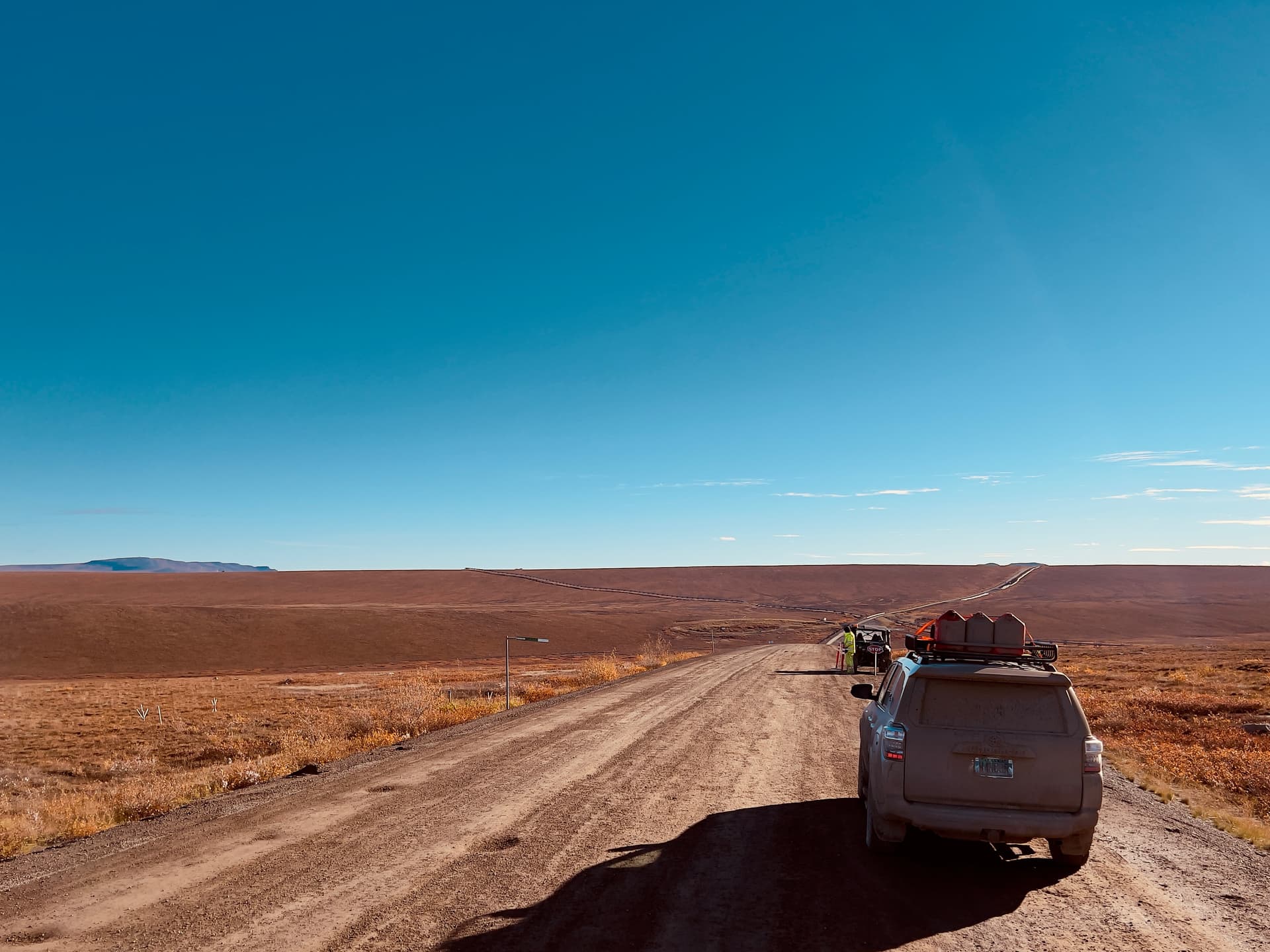 进入Dalton Highway之后,第一个1小时是一段非铺装路面帮大家热热身,然后紧接着又回变成铺装路面让大家放松。 整条Dalton就这样反反复复的铺装和非铺装路面的组合直到最北端。总的来说路况比我想象的好很多,Surbuban开个4H就可以轻松跑完,全程也没有需要特殊越野的脱困点。再加上周末路上卡车少,晴天一路开到60 MPH 轻轻松松。