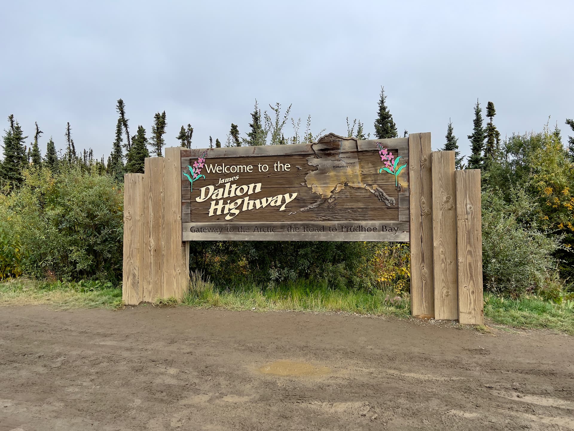 开车从Fairbank到Dalton Highway 起始点大约2小时。到此为止路况都非常的好,全铺装路面State Highway标准。即使不跑Dalton,开2小时过来看看风景再打个卡也是非常推荐的。