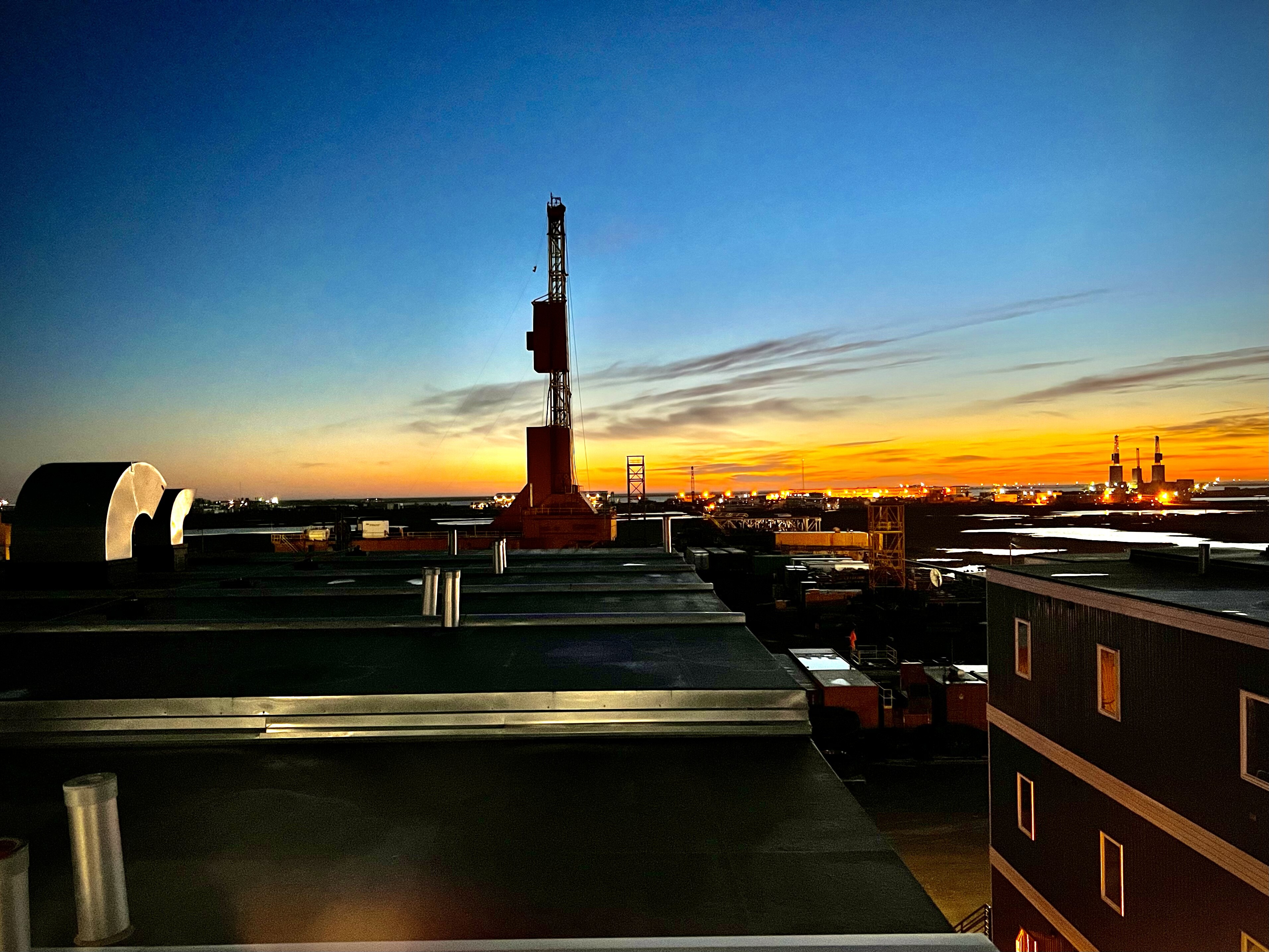 晚上入住了Brooks Camp的 油田景房看落日。夜里起来的时候窗外非常壮观,整个Prodhoe Bay绵延到视野尽头的点点灯火很难让人联想到这里是的北冰洋沿岸。