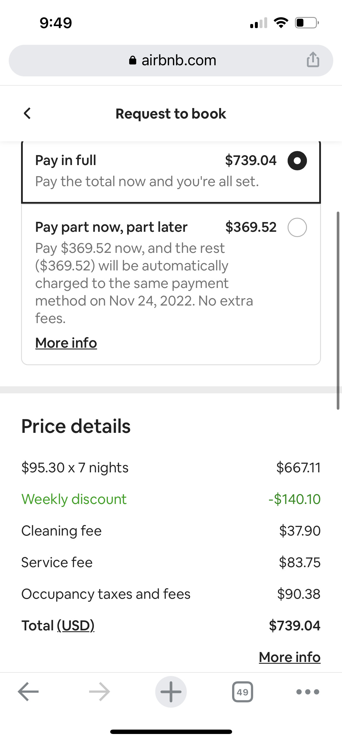 airbnb狡猾就是list价格不含税费,酒店税费也就12%,加上也没多少,airbnb finaln total能加30-40%,疯了