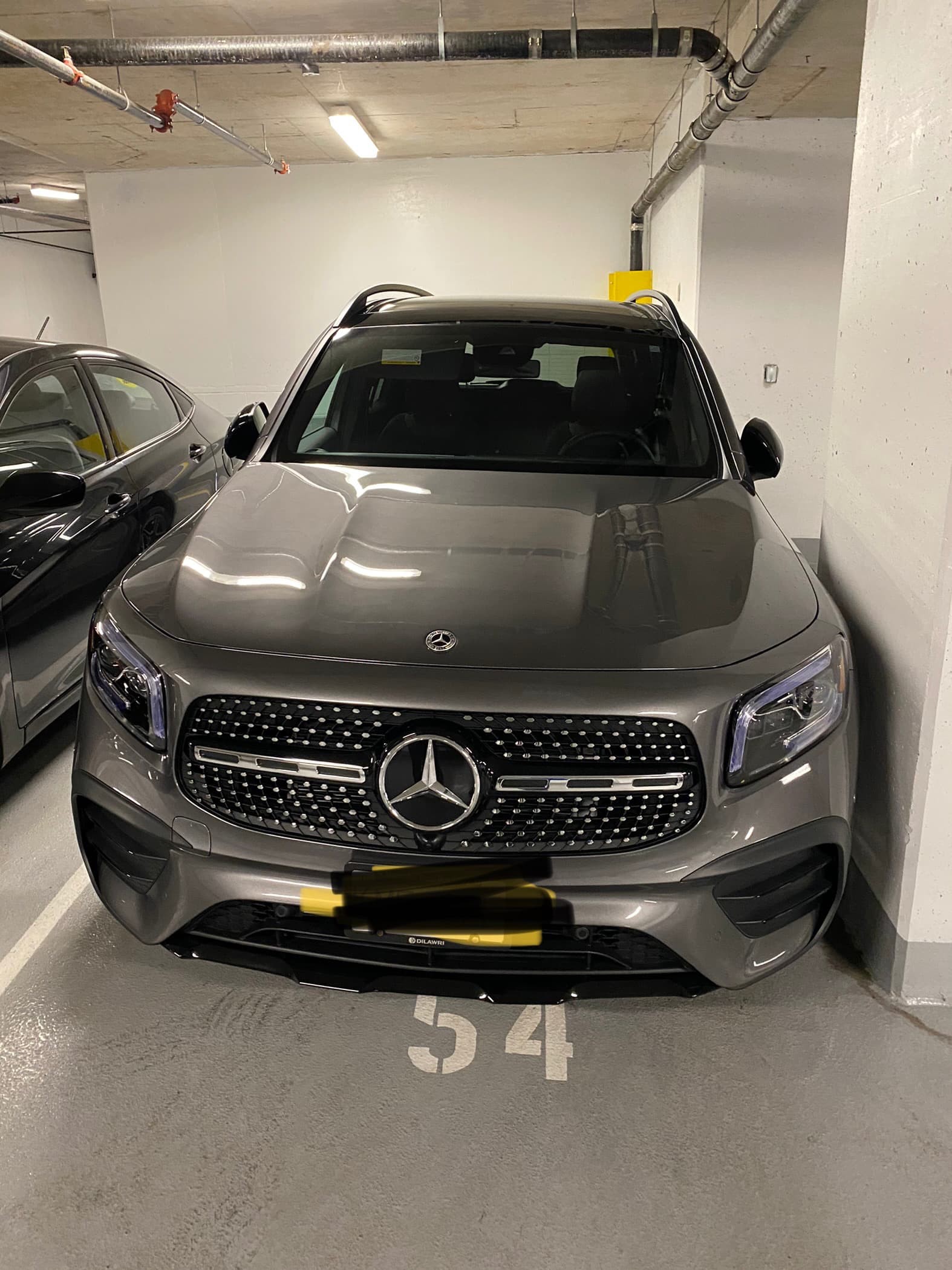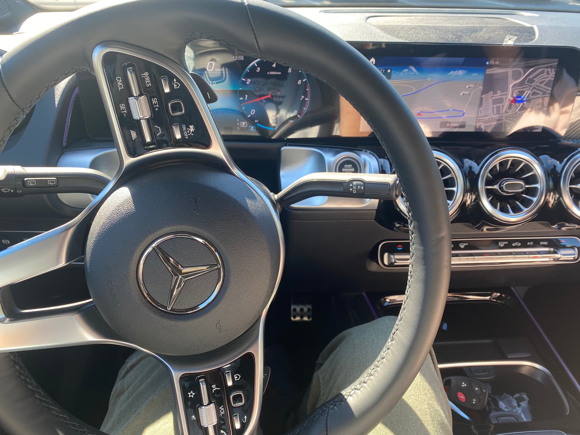 想搞个奔驰。奔驰在这个价位段有GLA, GLB, GLC。GLC,旧款不是联屏,新款又是大竖屏,个人不太喜欢(但是驾驶感受明显好一点)。GLA,太小,而且只有GLA45有现货,pass。突然看到展厅一台mountain grey选了night package的GLB250,还是高配。走不动路了,秒提,MSRP提车,加了2a1b包和轮胎险7万加币出头。
