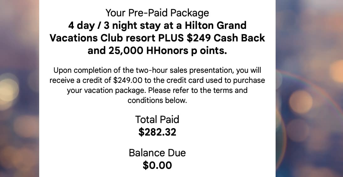 刚刚打给Hilton用FN定了两晚凤凰城酒店,然后客服说听一个广告可以拿1000积分,想了下就说好。然后转接到Hilton Grand Vacation部门,给了图里的offer。基本就是花几十的tax就可以住4晚(写的3晚但客服说多给我一晚),拿25000的希尔顿点数,代价是有一个两小时的sales presentation。不知道这是不是就是大家说的听课房?他们的这些sales presentation一般都说些啥,是一对一的吗(本人严重社恐晚期)。