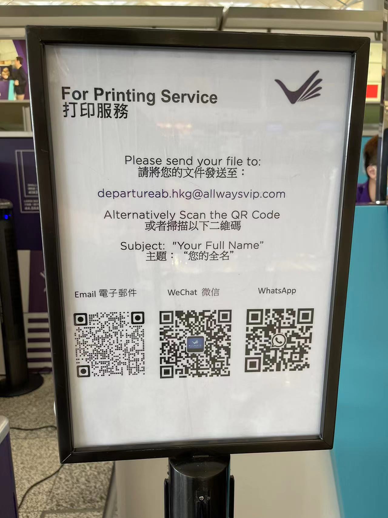 - 随后去 L7 离港层 D 或 H 段东侧(乘客入口侧或靠近检测点测、远离安检禁区侧)的机场礼宾服务点彩色打印为纸质报告(HKD $10 每页)