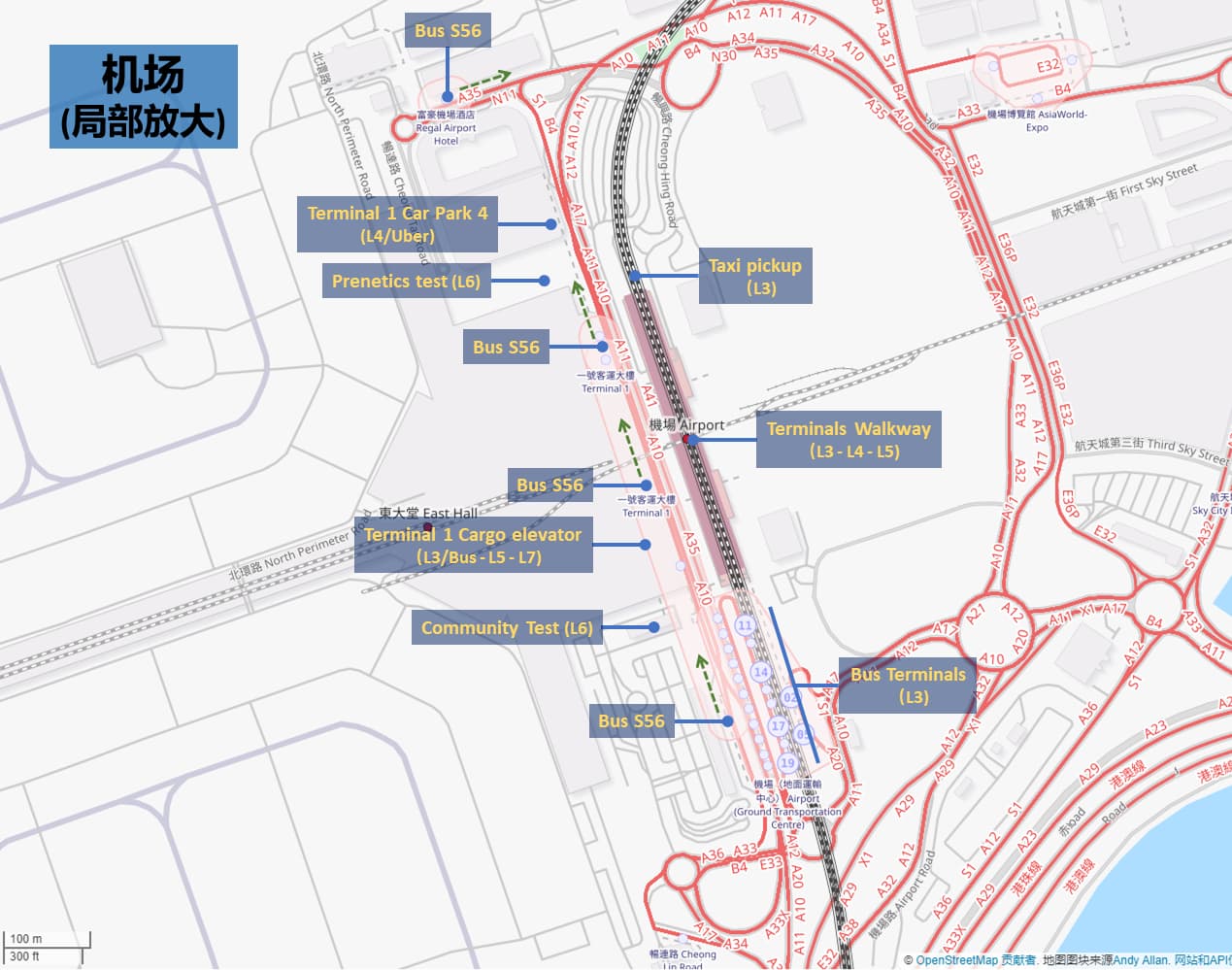 - 具体位置是 L6 的最北侧接机大堂 A 区,和上述社区检测点相反的另一头;和空路出行前的快速核酸扩增检测 (NAAT) 点临近