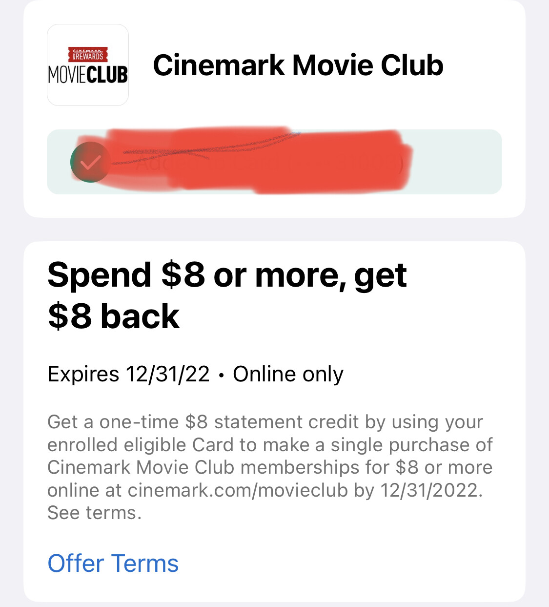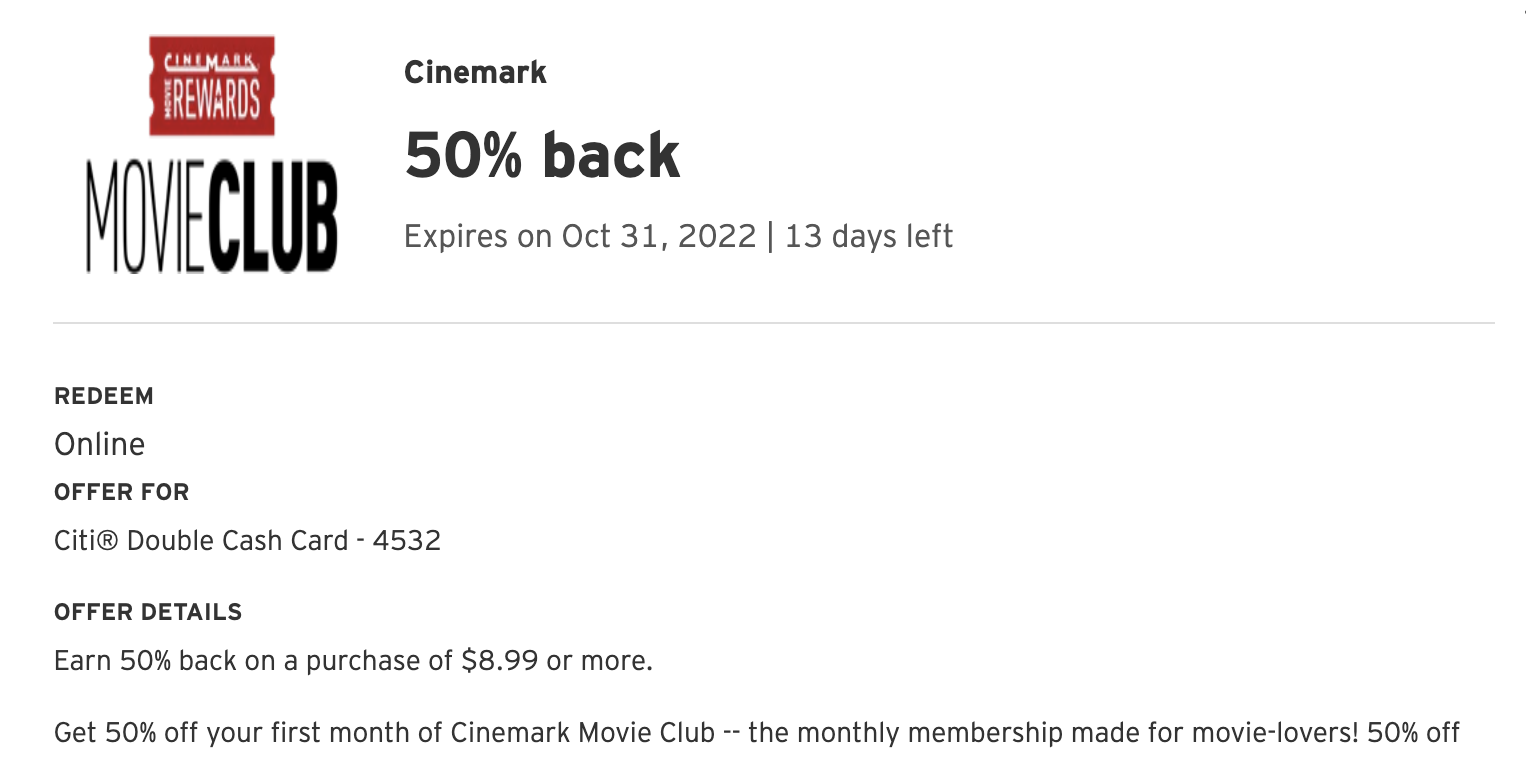 现在amex有这个Cinemark movie club 8-8的