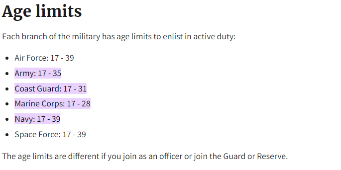 air force, army,navy的reserve和national guard, bootcamp3个月 毕业后还有个专门的训练大概1-2月