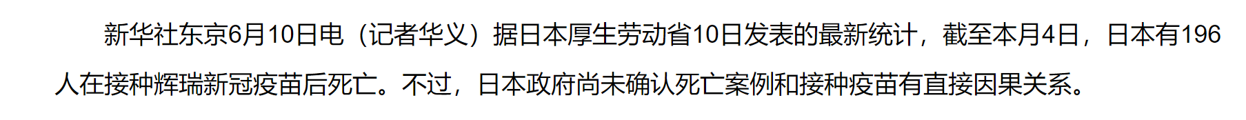 “日本有196人在接种辉瑞新冠疫苗后死亡”这句话本身什么都说明不了。