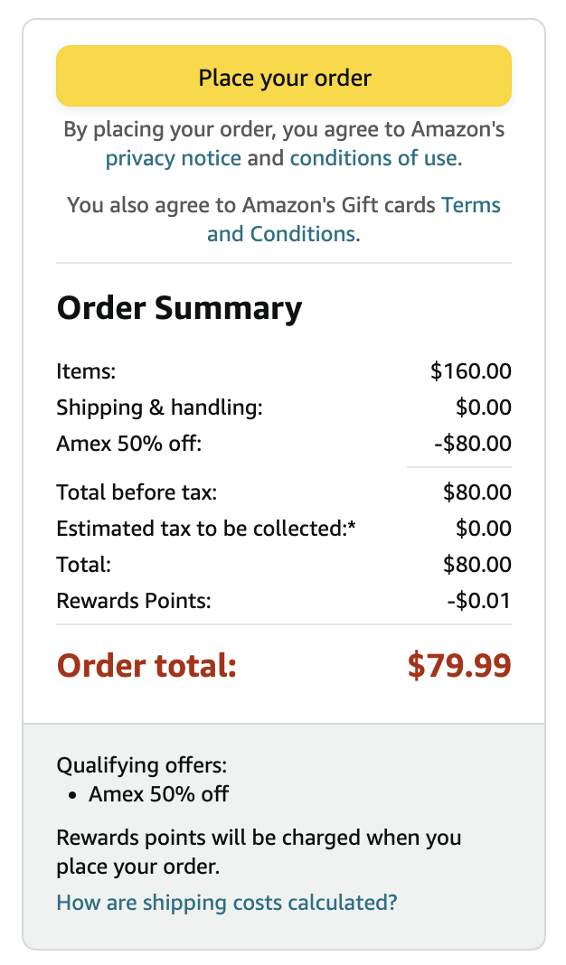 上次抽到 50off to $60,结果忘了用了。这次是被猴哥导航过来的,本来是想薅一个discover 10块小羊毛。看到amex up to 80试试手气,结果中奖谢谢猴哥。