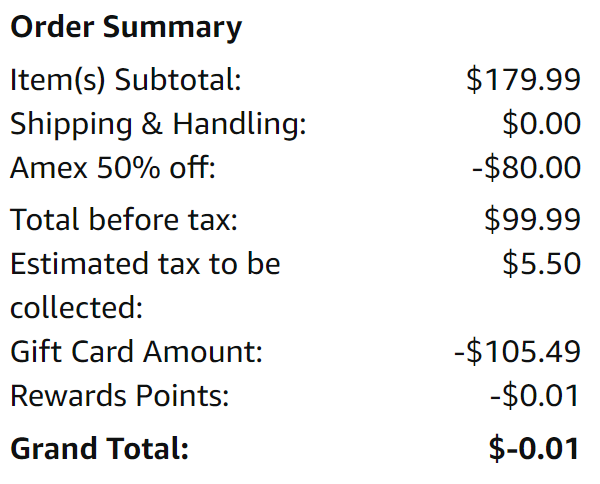 amazon gc系统有的时候会出问题,在刚付完的时候可以无限加gc上去抵(eg 100刀的东西你可以apply 150刀的gc上去)然后receipt会显示负数,一般发货之后gc就会退给你重新变成0