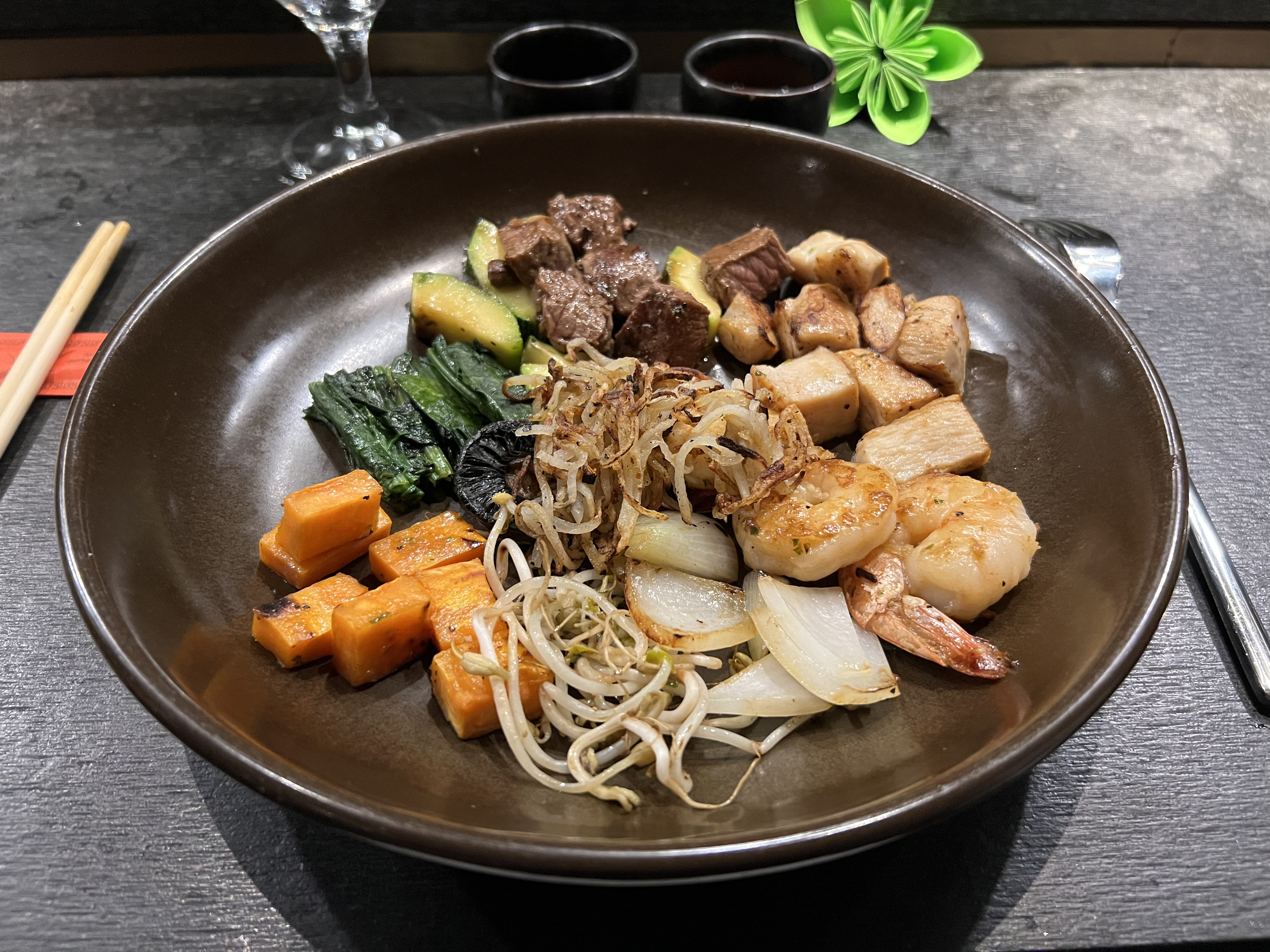 需要预定的tepanyaki,也在日料餐厅里,一般般,如果边上的日料好吃: