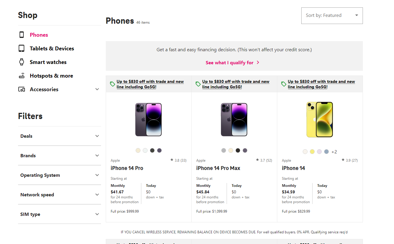 下面另一个promotion Up to $830 off with trade and new line including Go5G!