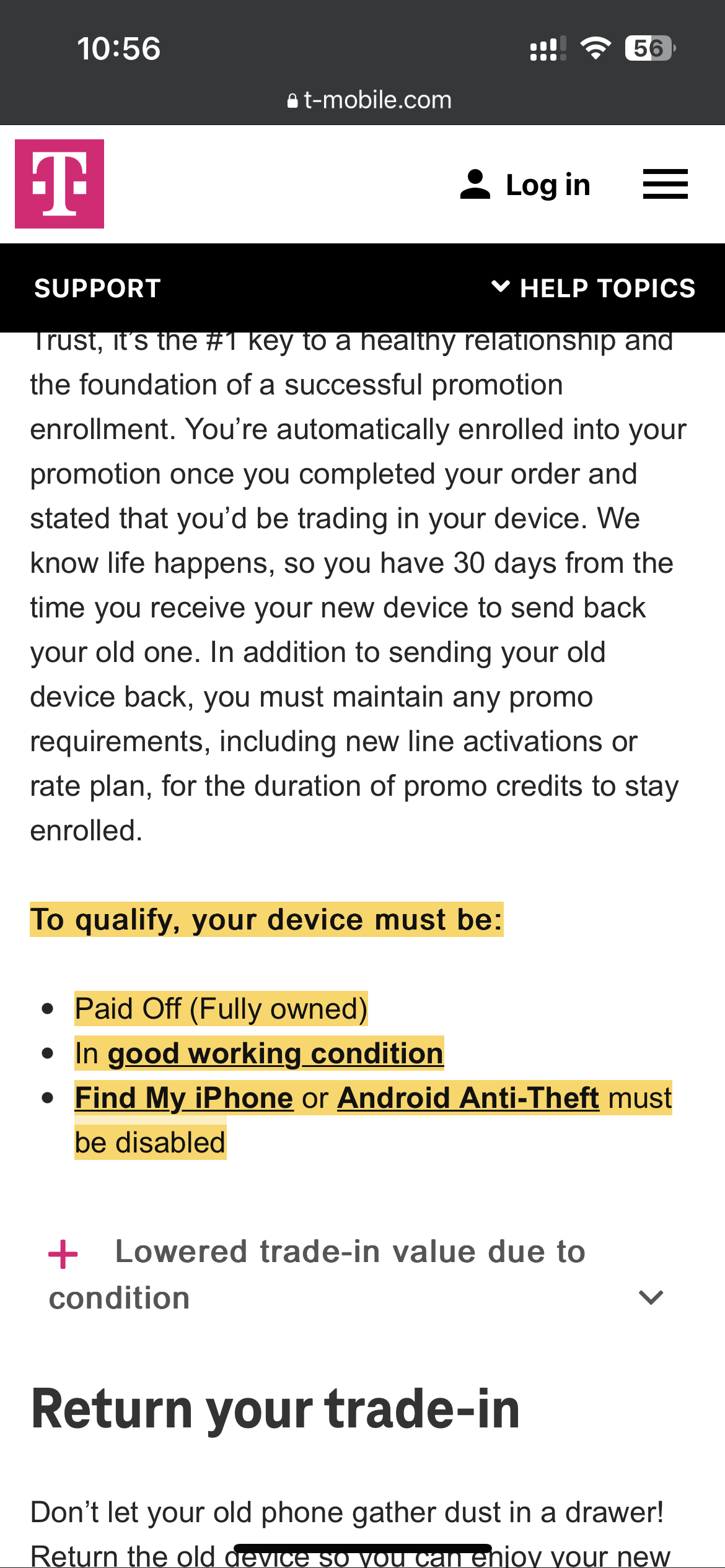 请问这个offer信息哪里有说?我前几天办提供的tradein的手机是个带tracfone锁的,这感觉是要完蛋啊 ![]()