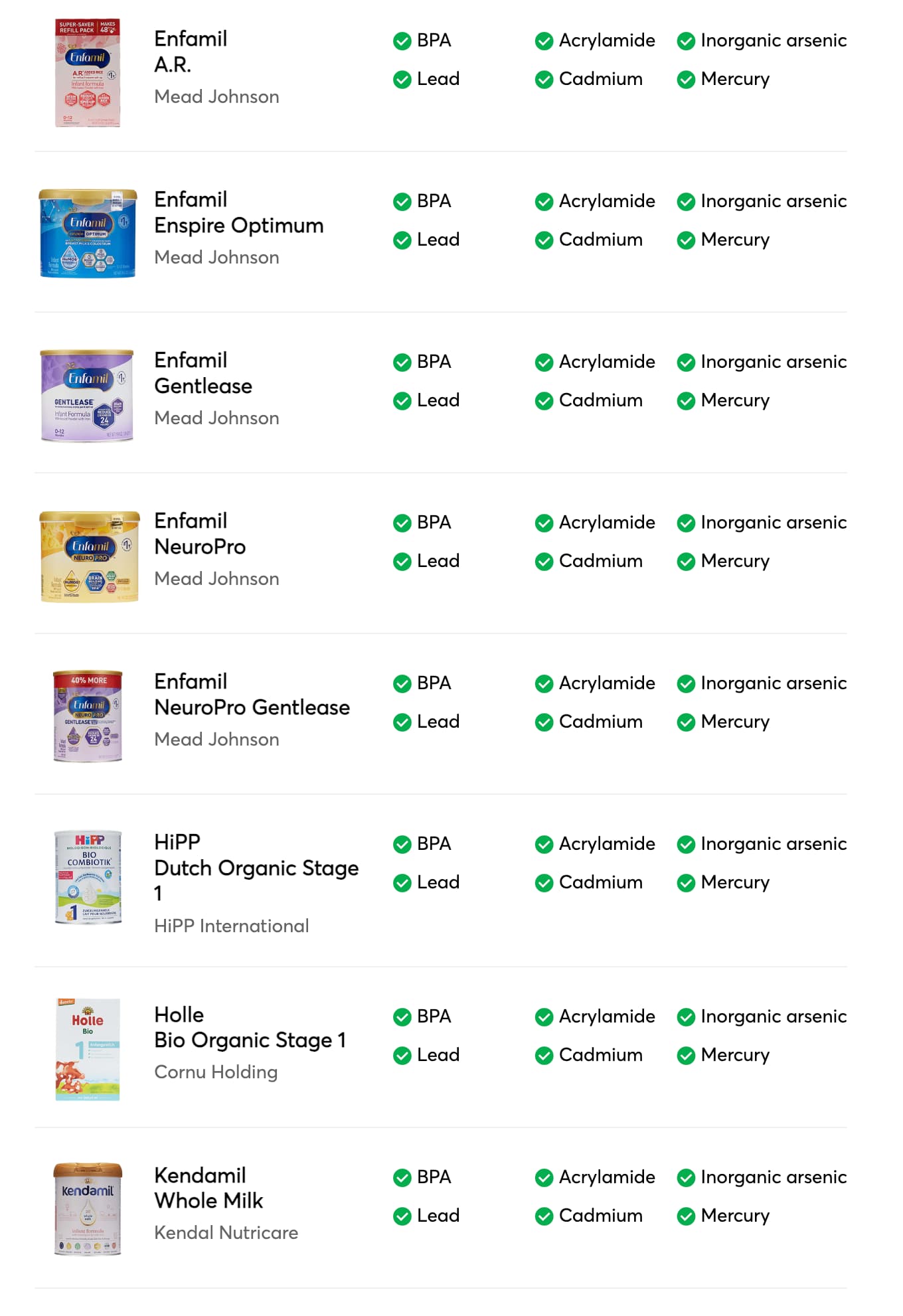 胀气的厉害 去看了儿医 这位儿医直接让我们上了深度水解(Hypoallergenic) 奶 Enfamil的Nutramigen 含LCG的 (这款水奶不含LCG)换了这个娃开始每天便便了 上文有人提到了一个美国的奶粉检测报告 那上面这款Nutramigen是问题最多的 含铅 含BPA 简直逆天 我们就换了Similac的深度水解Alimentum 娃倒是喝 就是喝完了又不拉了 所以我又不的不换回去。