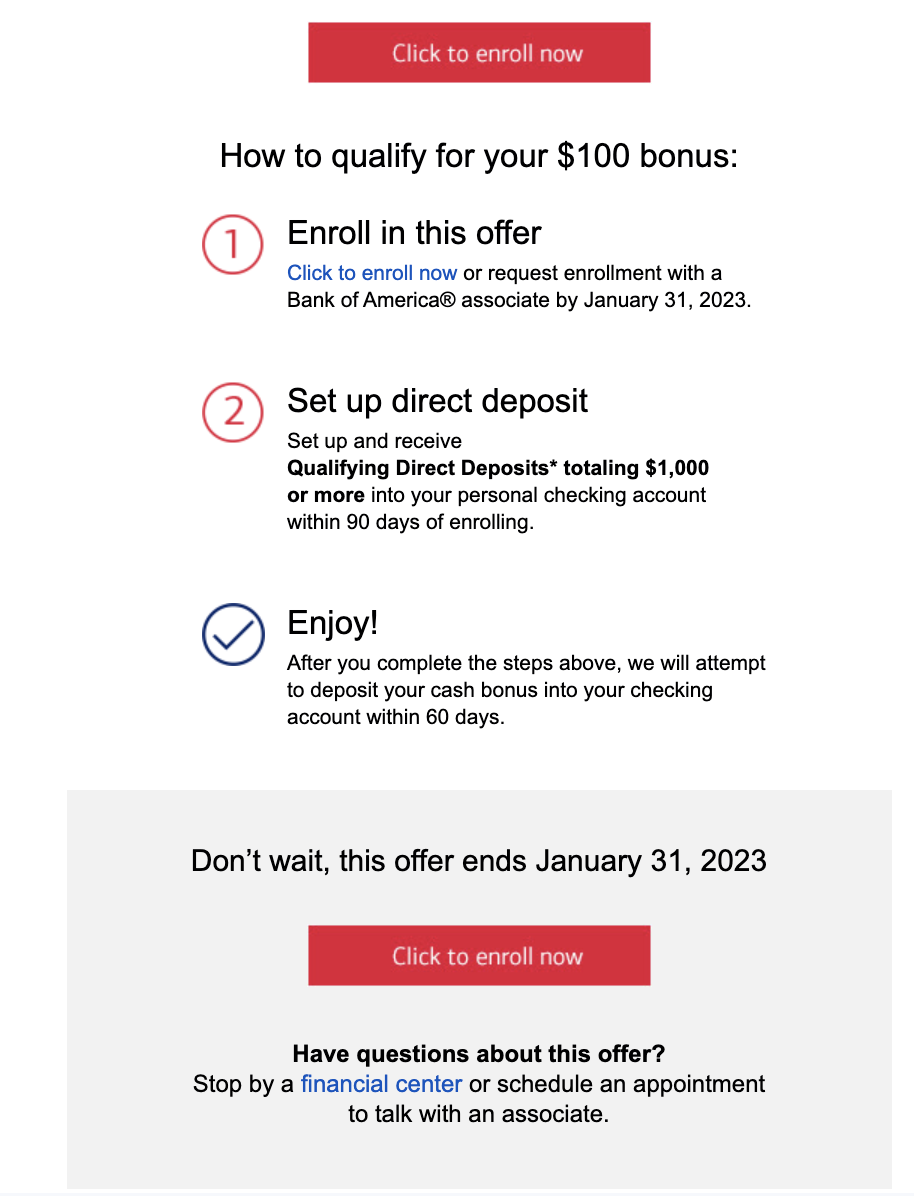 To enroll in this offer, you must have accessed this page via a direct communication from Bank of America.