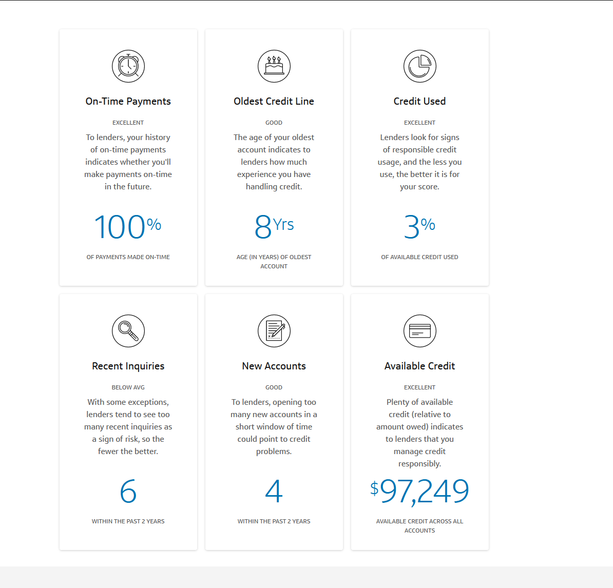 这个recent inquries的 good 要求最近两年只能有1-2个inquiry。。。这实在是要求太高了吧。