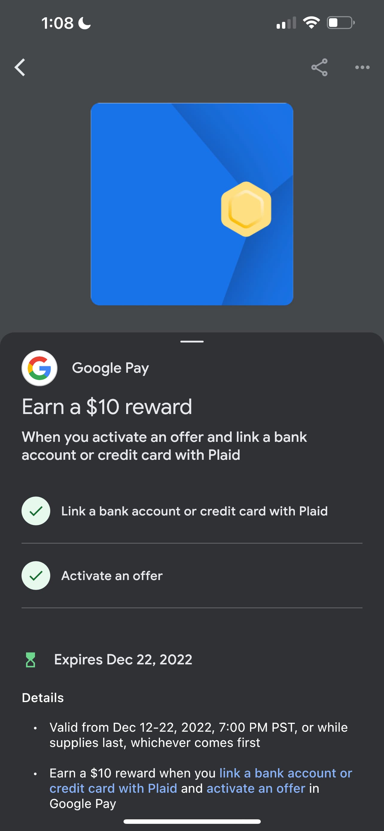 我一开始也看不到 点了一下 link account。 offer就自动出现再最前面了