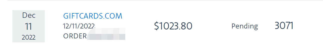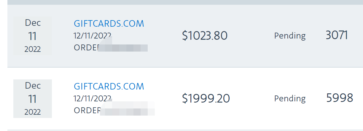 事情起因是这样的:前段时间的giftcards.com有5%off买vgc活动,在一次偶尔地买了2张250的vgc后,楼主惊喜地发现giftcards和AA Portal之间的IT算法接合没有做好,在部分账号中,AA portal会错误地track买gift cards的金额,多乘订单中购买giftcards的张数。