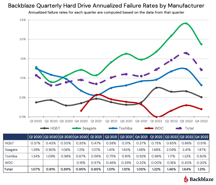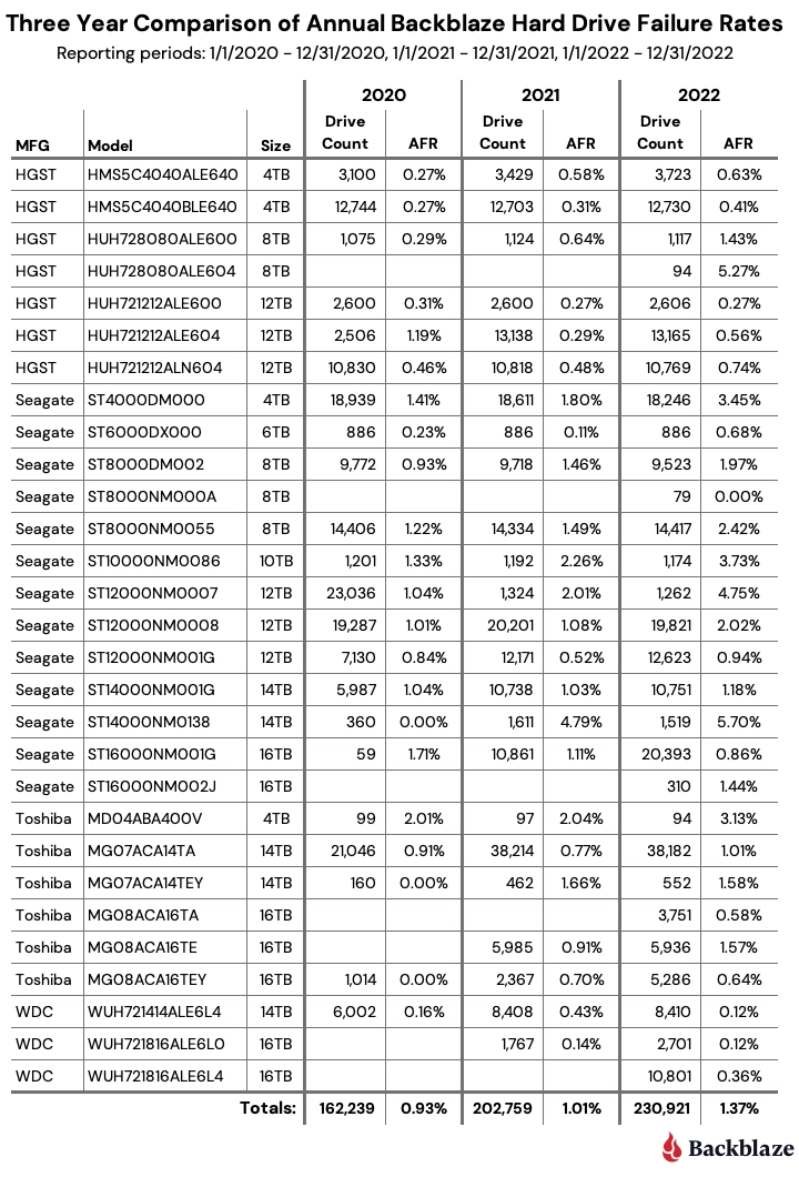 你一直关注bb的统计的话就会发现hgst的故障率只有希捷的一半,甚至零头。看图,盘数上万的,希捷就没有哪个是低于hgst的。希捷好几个都超过1%,西数好几个都低于0.5%