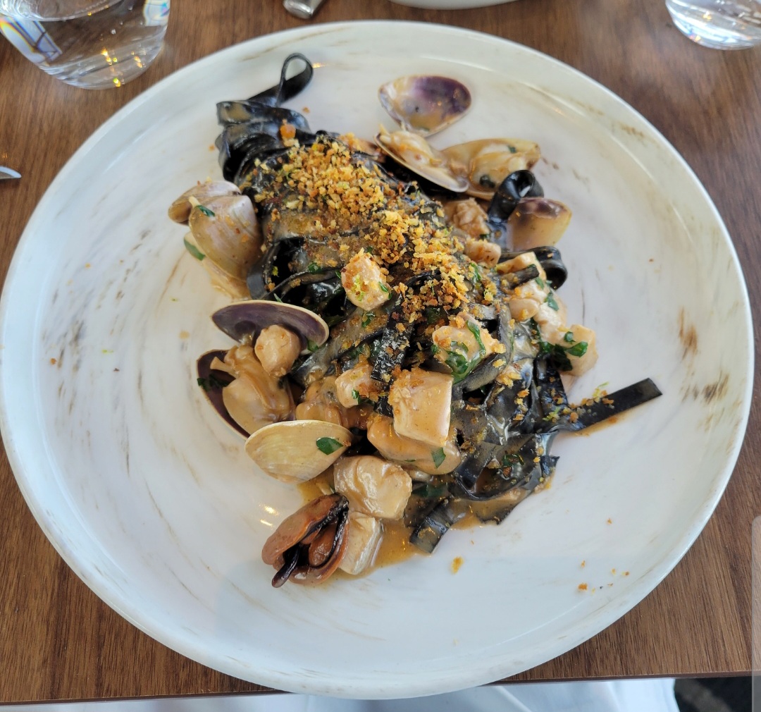 关于墨鱼面,我在威尼斯圣马可广场边上的小店第一次吃到很惊艳,吃得满嘴都是黑的
