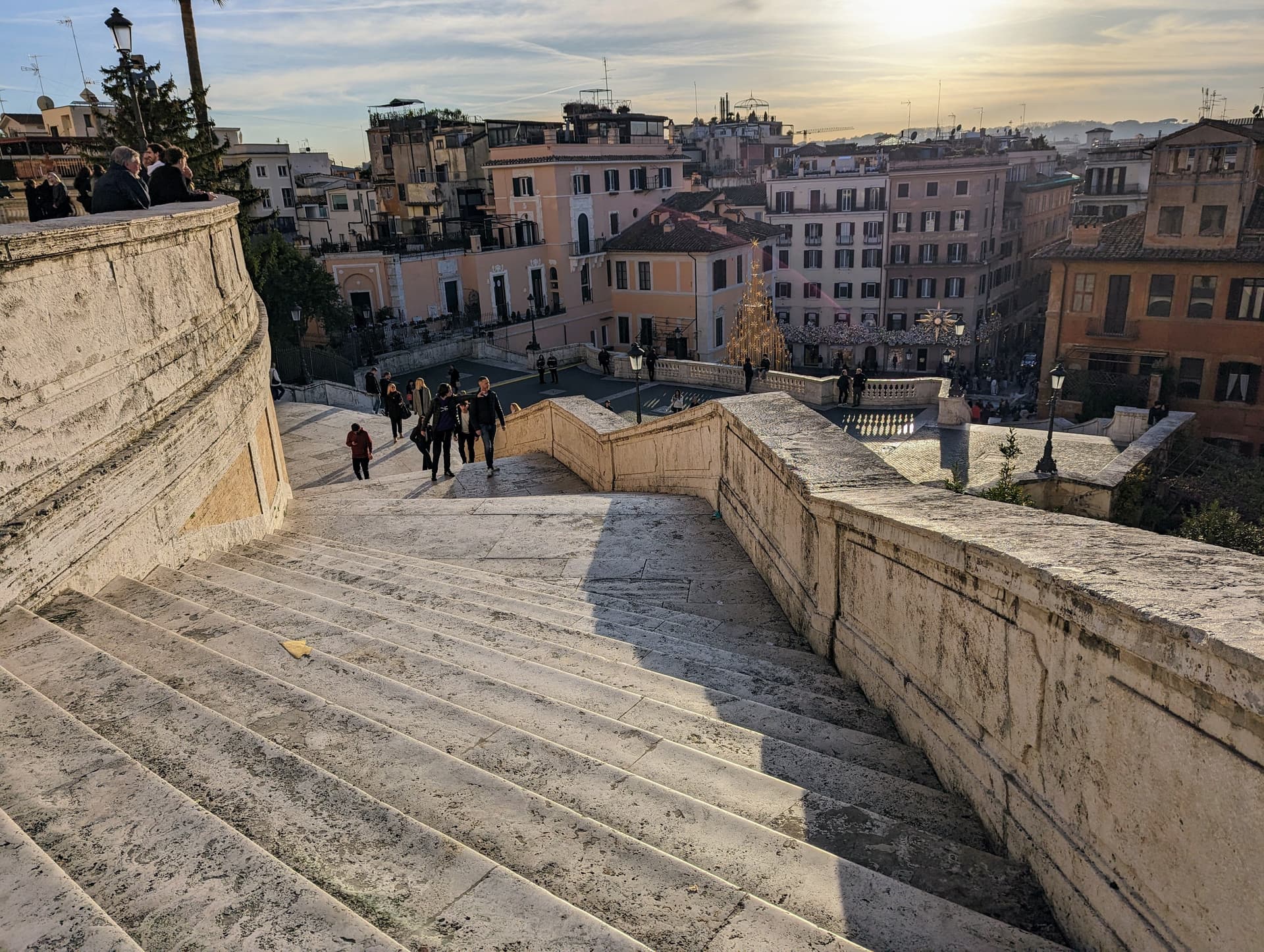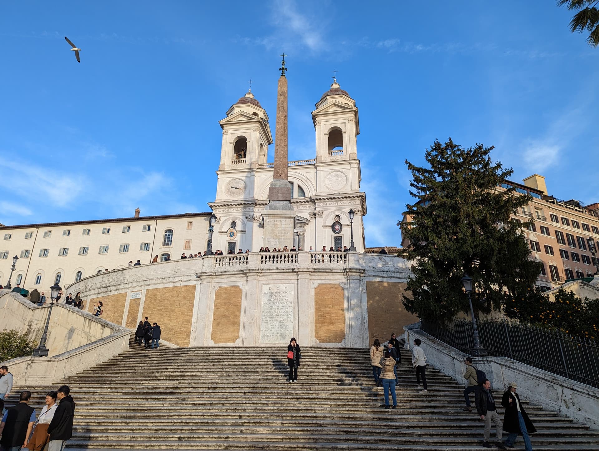从瑞吉步行20分钟到了西班牙阶梯。这里因为《罗马假日》里赫本坐着吃gelato而成了知名游客打卡地。然而2019年起政府就禁止了坐在上面,违者可处250欧罚款。在现场看到一个小孩坐下来,立刻被警察叔叔过去批评教育了