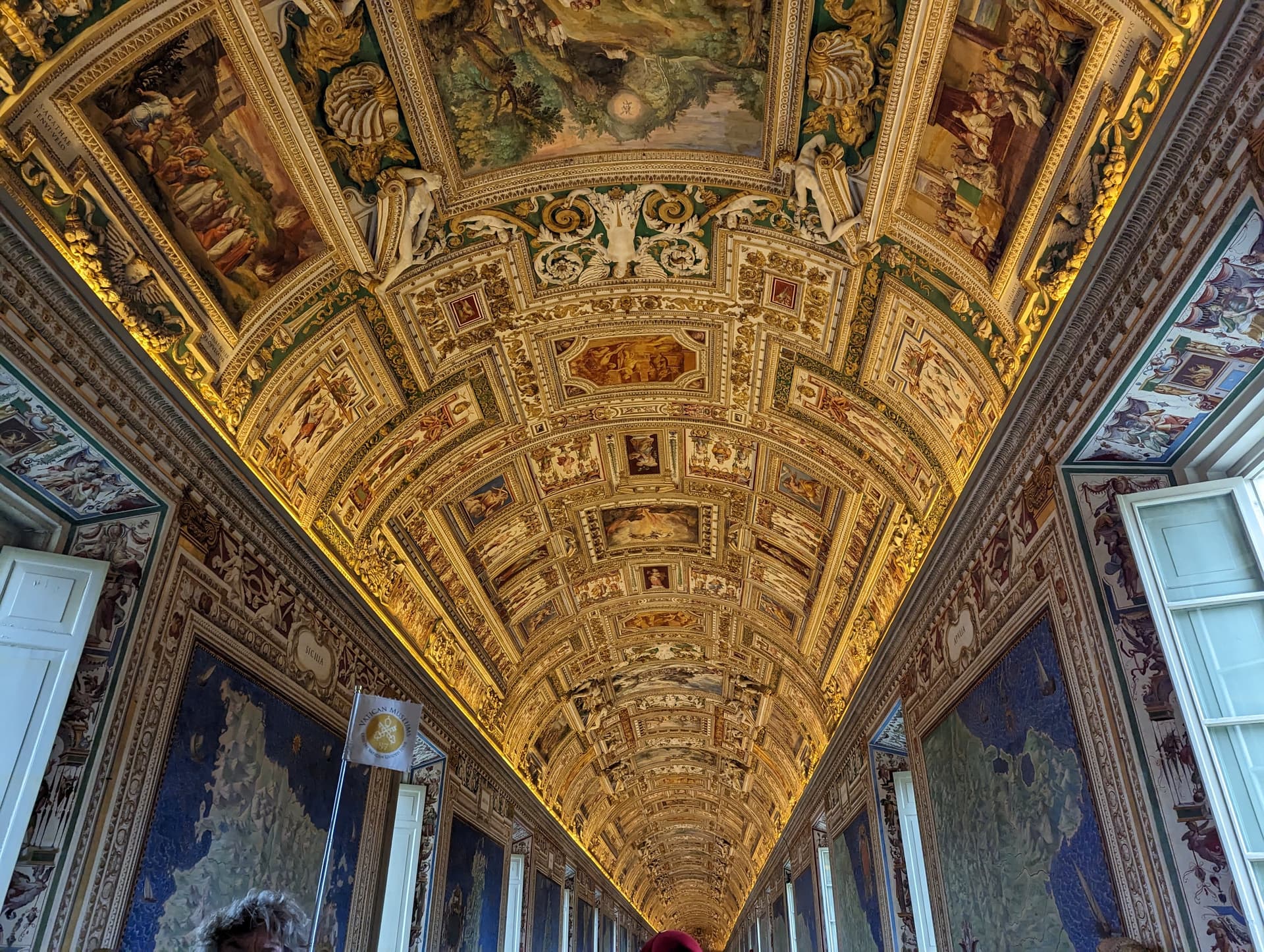 从地铁站出来开始,就不断有人围上来问“旁友,票子要伐”,还会给你乱指路,again不要理会,到了门口绕过队伍直接把预约信息给工作人员看就可以进去。梵蒂冈博物馆和西斯廷小堂连在一起,后者有米开朗基罗的《最后的审判》和包含《创世纪》在内的天顶画,因为西斯廷内要保持安静且不能拍照,所以guided tour一开始先在庭院里对这两幅画进行了讲解,才开始梵蒂冈博物馆的行程。