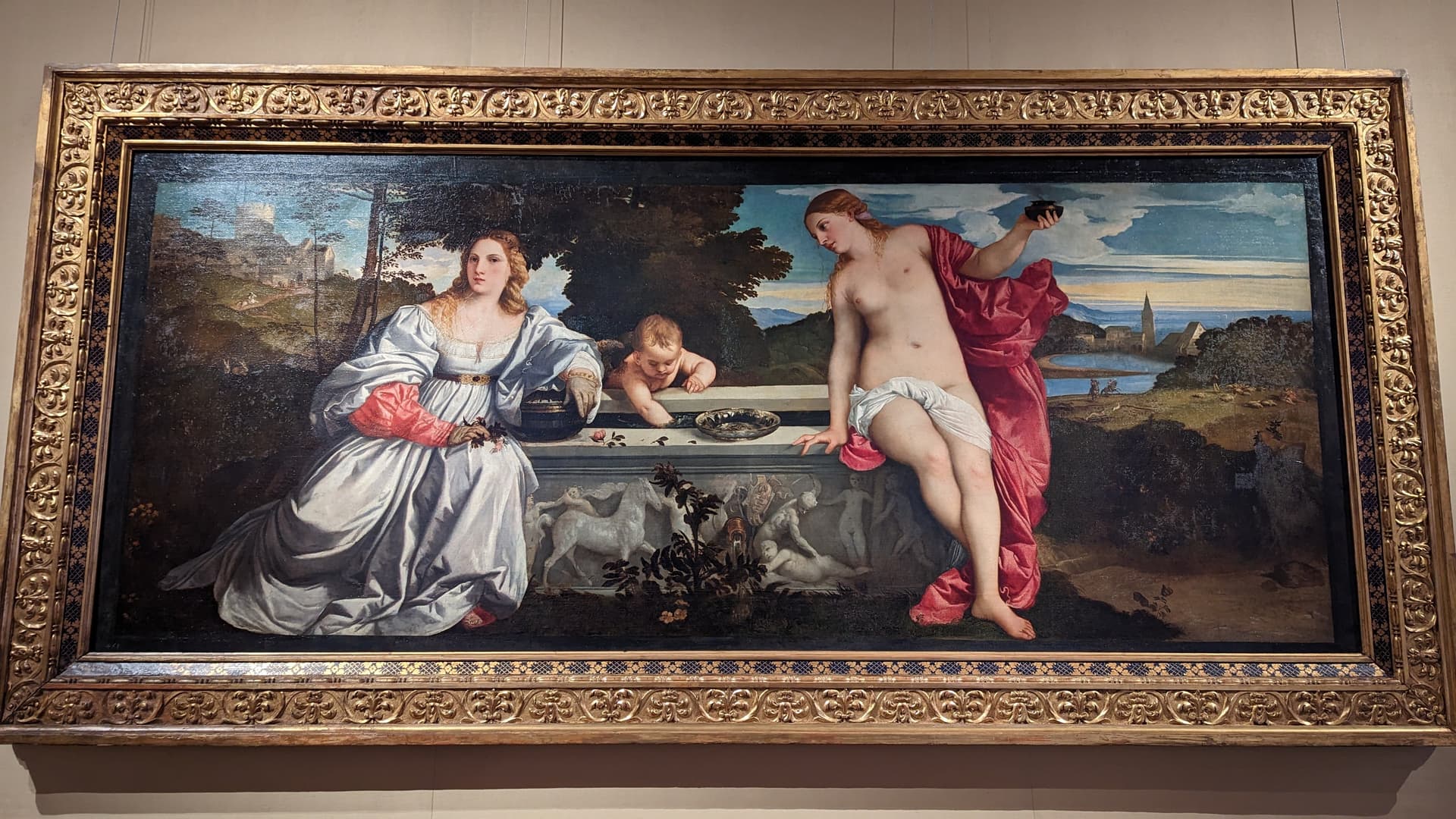 提香的《圣爱与俗爱》,正好碰到讲解的小姐姐问大家哪个是圣爱,有不少人猜错。