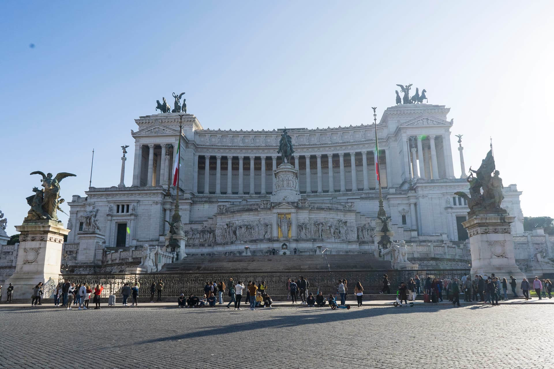 市中心的威尼斯广场。正前方是埃马努埃莱二世纪念堂,为纪念意大利统一而建。