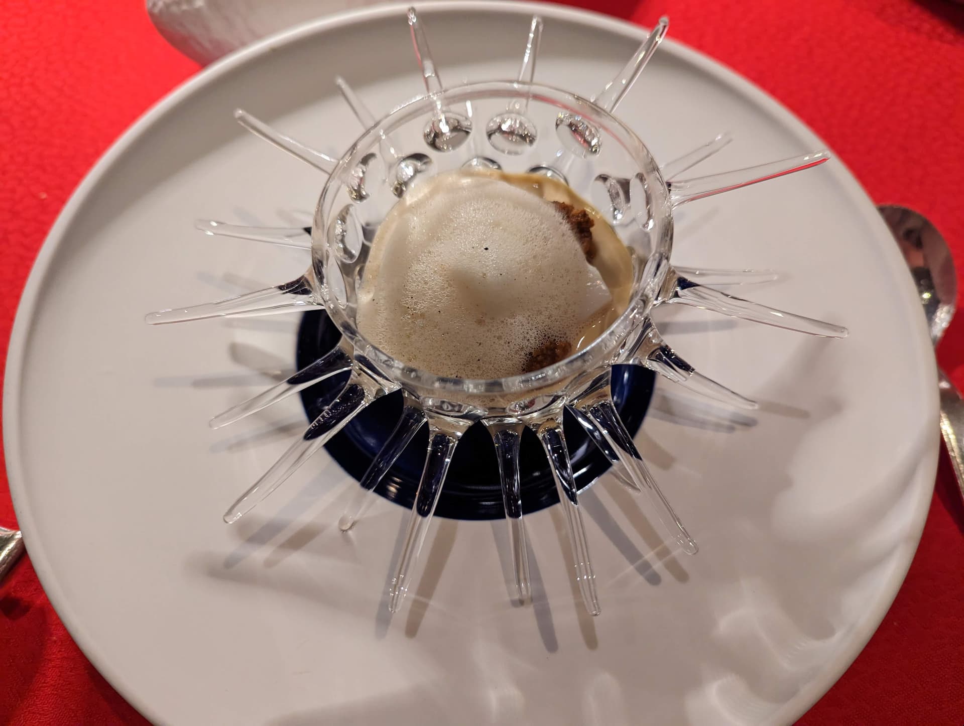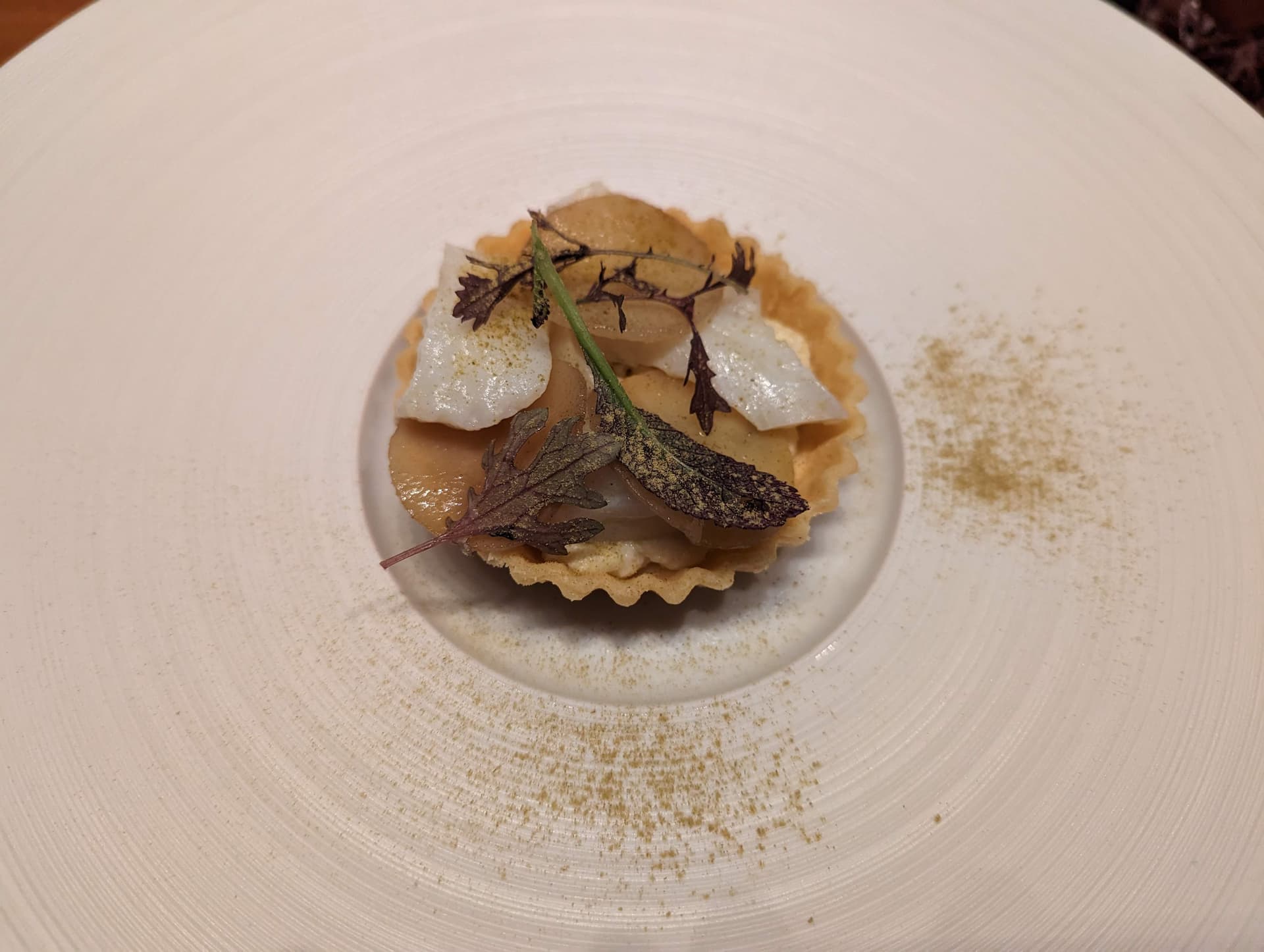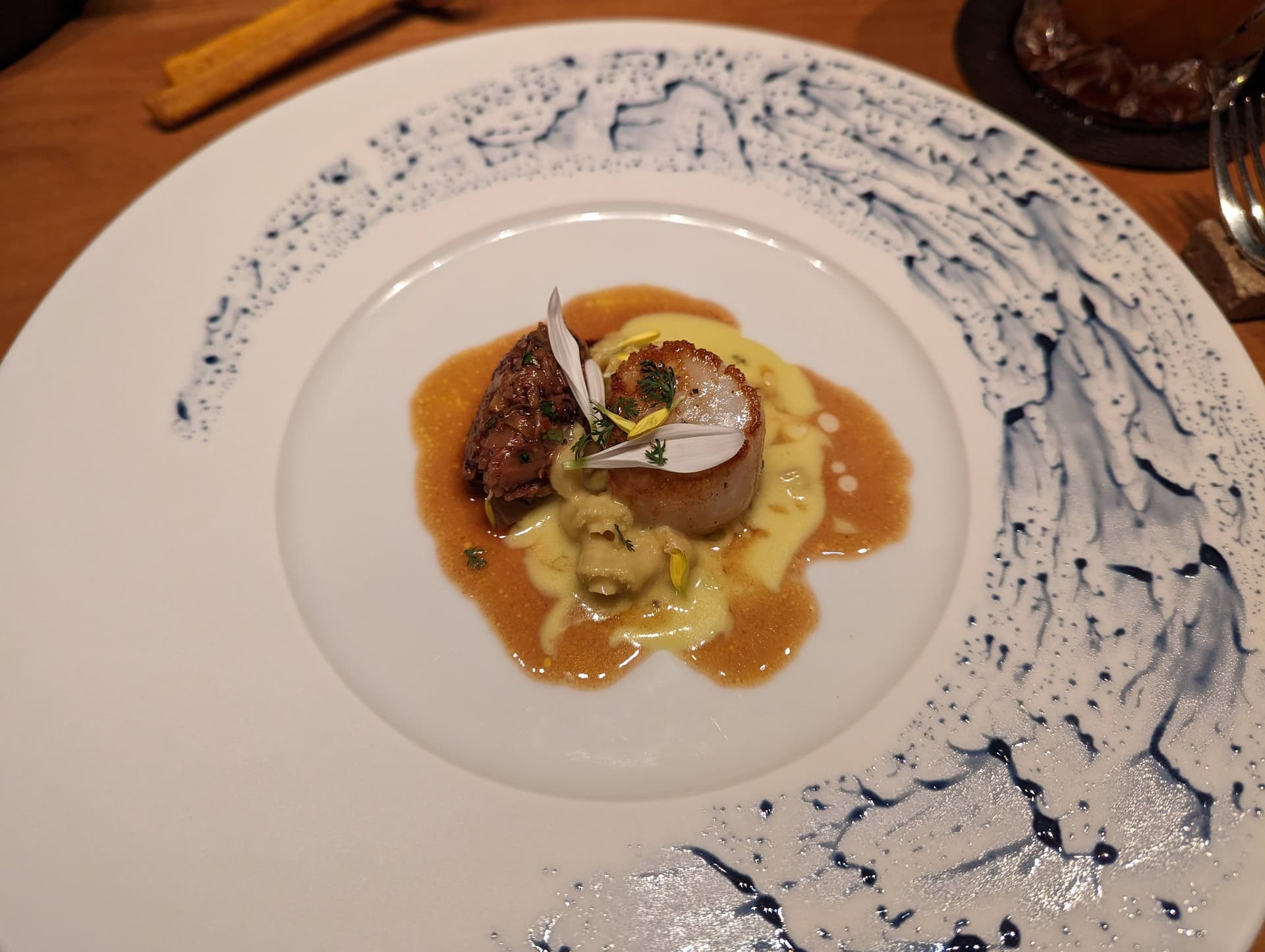 圣诞节当晚订了La Terrazza,如前面所说,订这家是为了圣诞晚上有个离酒店近的地方吃饭。点了X Years Menu,感觉是个safe choice,然而事实证明菜确实也没有特别惊艳的地方,差不多就是一星的水平,分也主要是打给环境。餐厅在Hotel Eden顶层,夏天黄昏的时候如果能坐在窗边景观应该相当不错,天黑之后能明显看见的就只剩威尼斯广场了。