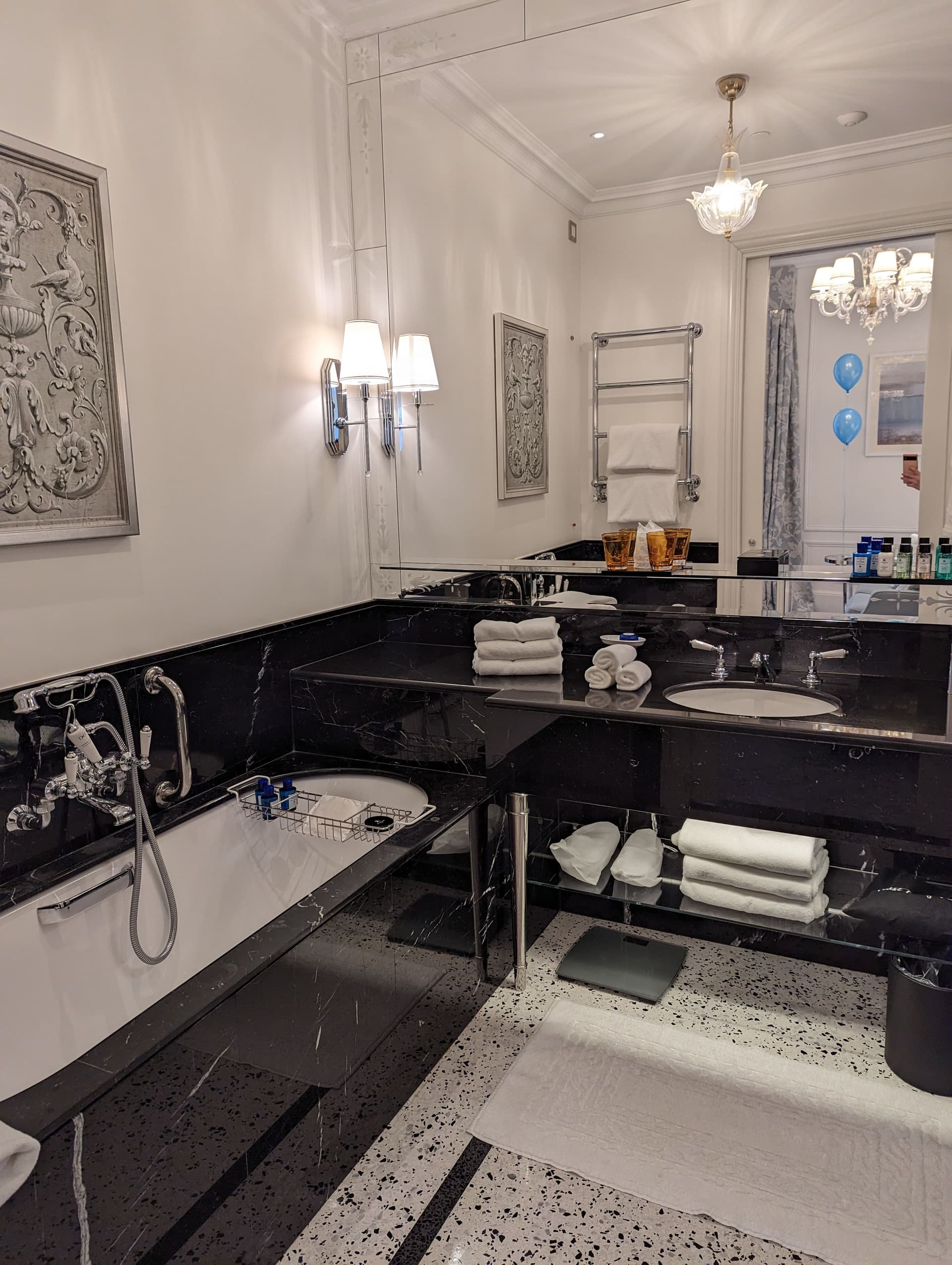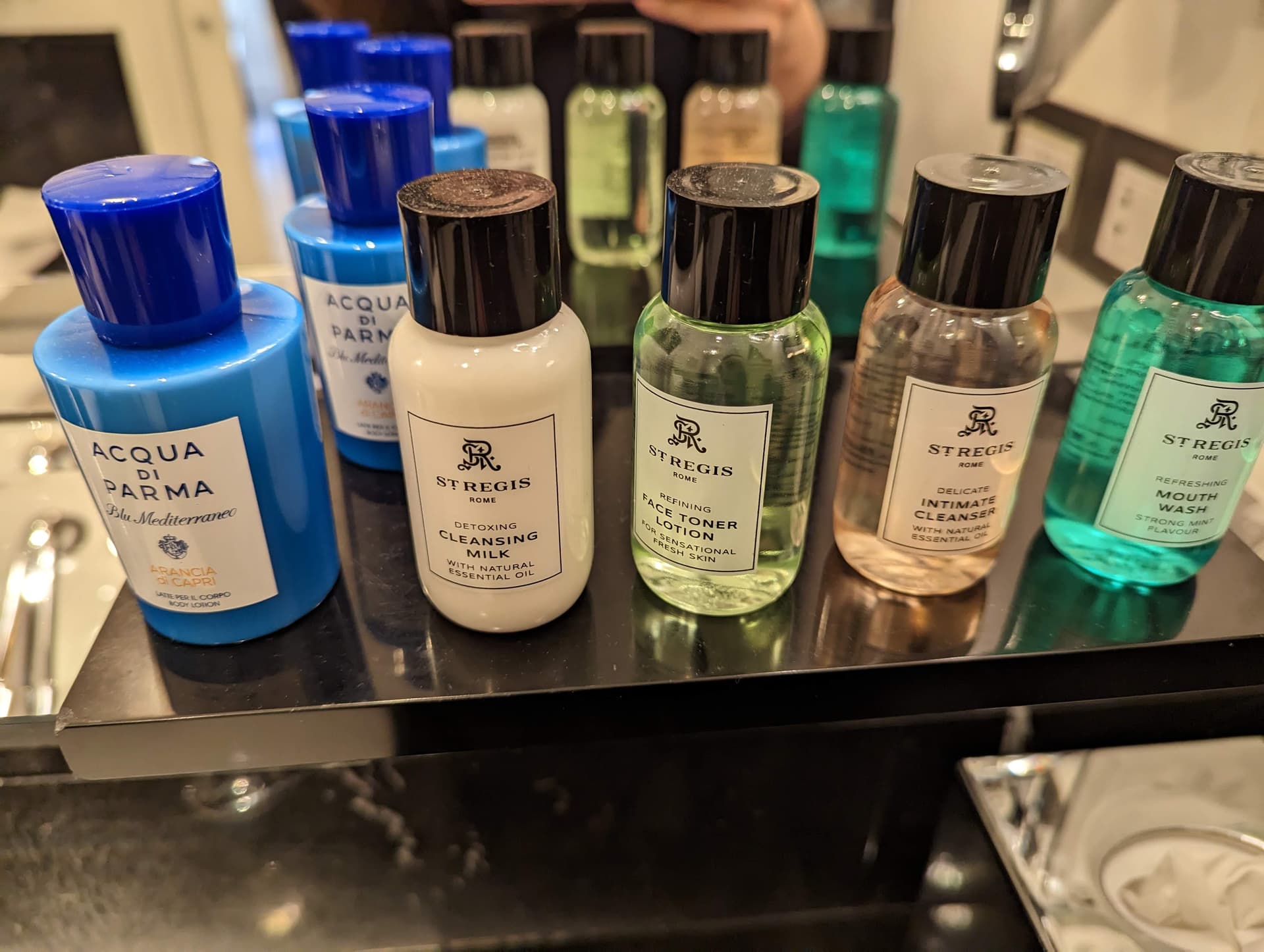 备品跟在米兰住的LC一样是意大利本土的帕尔玛之水,还有他们自家的洗面奶化妆水等等。在我入住期间,housekeeping在白天打扫和开夜床的时候都会把只开了一点点的备品直接扔掉换成新的,感觉好浪费,后来就自己先放起来了,反正也是要薅的。当然深受泥潭喜爱的frette拖鞋也是一定要薅走的。
