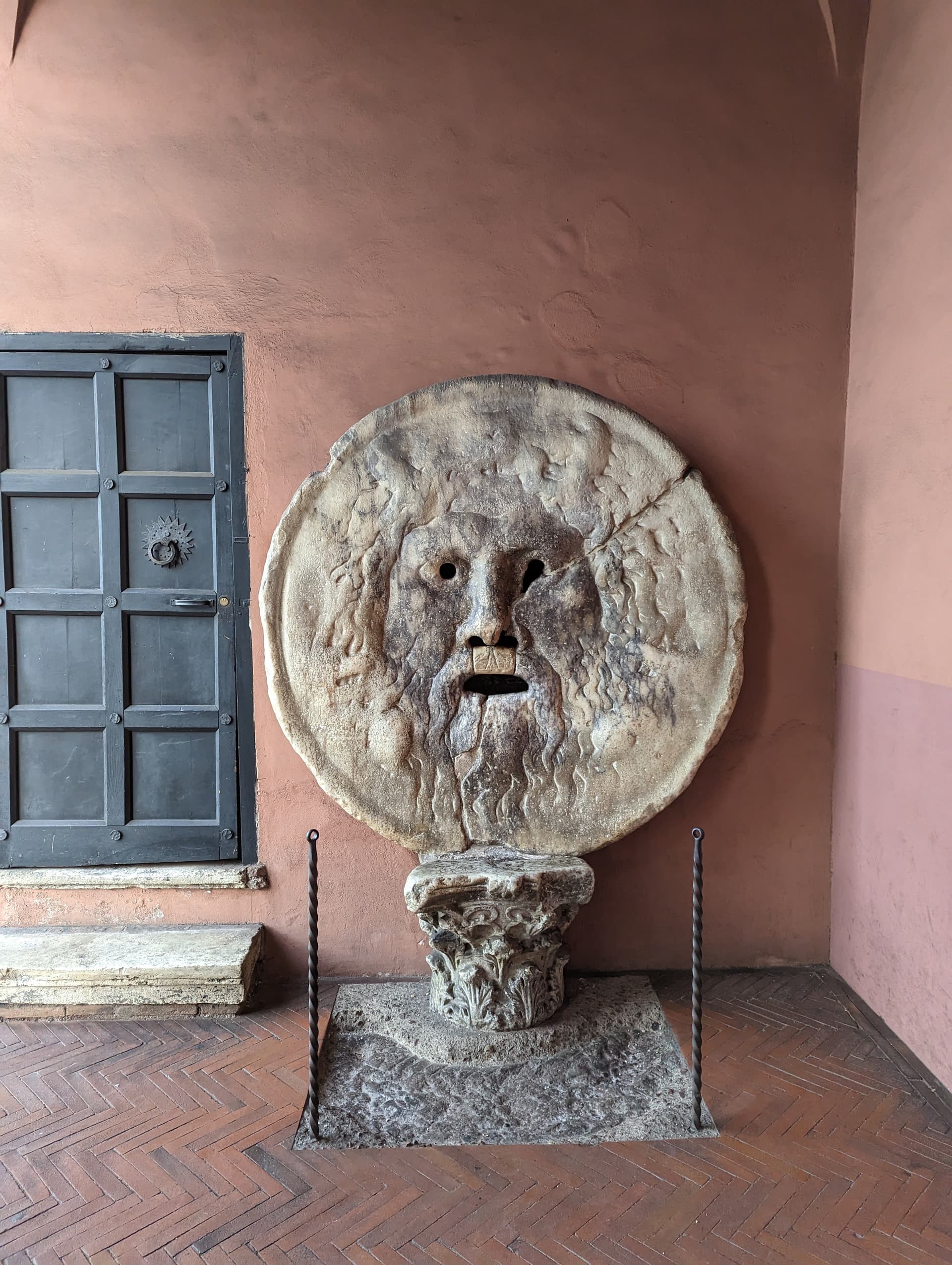 《罗马假日》里男主把女主带到这里,假装说了谎手被咬到的经典情景非常可爱。大家现在也都喜欢把手伸进去拍照(实际不是很深)。对于这个圆盘到底是什么,网上的解释矛盾而混乱,根据官网上的说法,应该是牧神的象征。