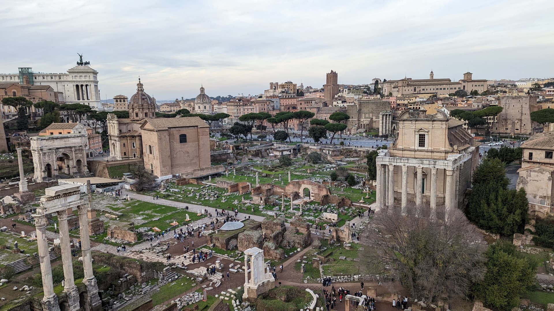 古罗马广场和斗兽场的票是一起的,入场需要再检一次票。这一片曾经是古罗马政治文化的中心,如今只剩断壁残垣。人事有代谢,往来成古今。登上帕拉蒂尼山俯瞰全景,想起爱伦坡那句广为人知的“伟大属于罗马”,我这个异乡人也难免有些岁月沧桑往日不再的感慨。