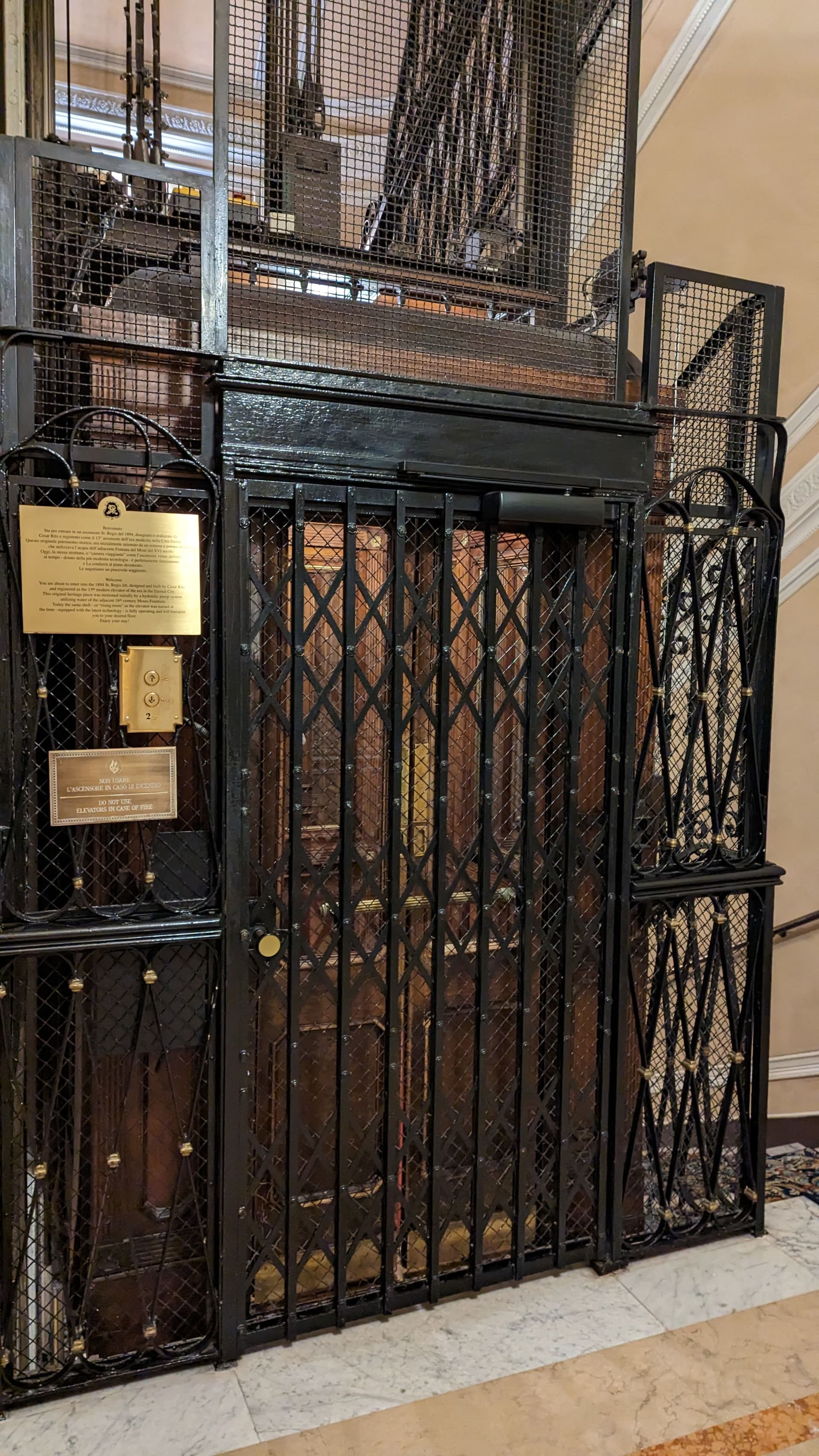 后来还在角落里发现了1894年的古早电梯,现在还可以正常运行使用。