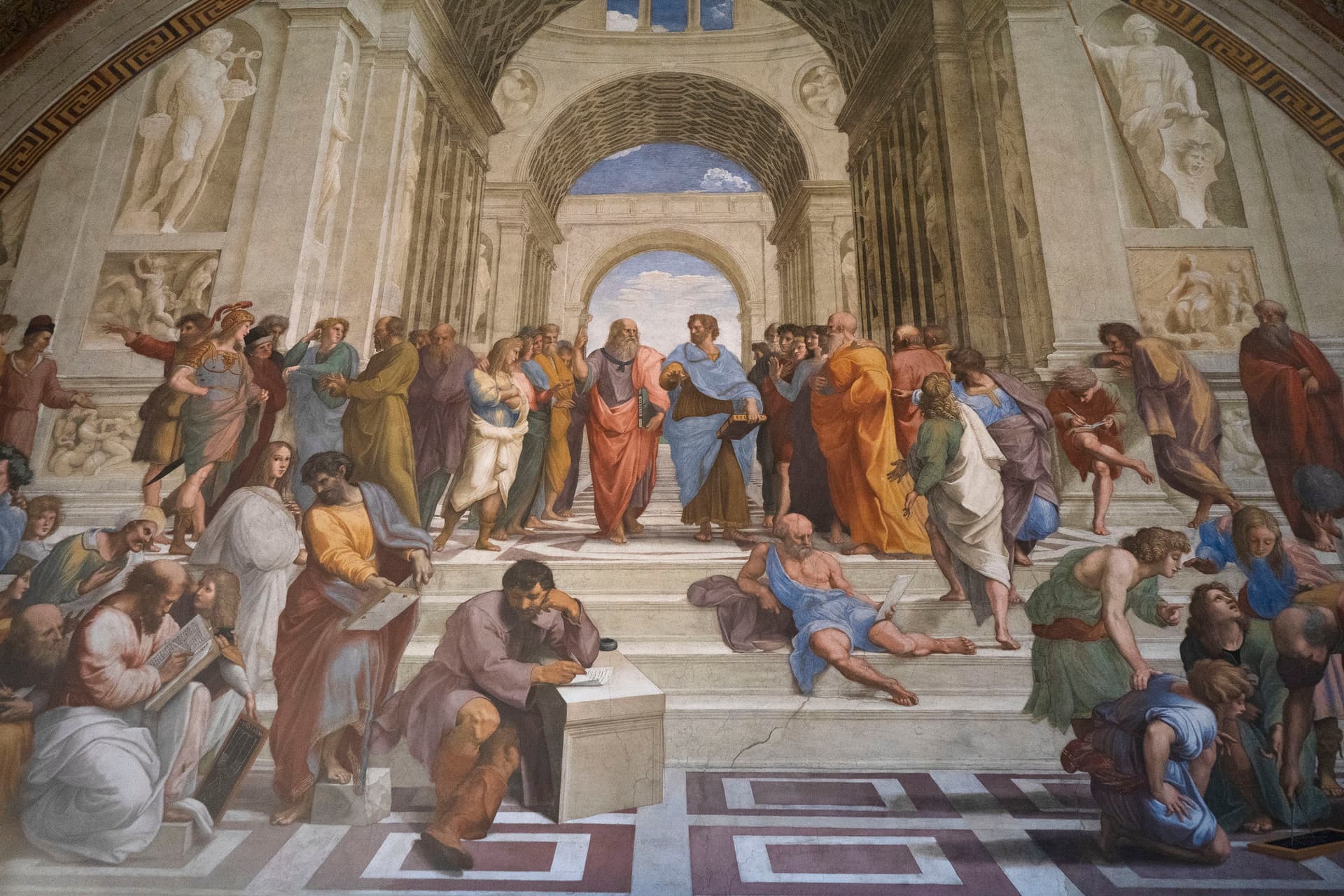 拉斐尔这幅《雅典学院》所在的房间也是游客最多的地方之一,中学历史课本上有这幅画。