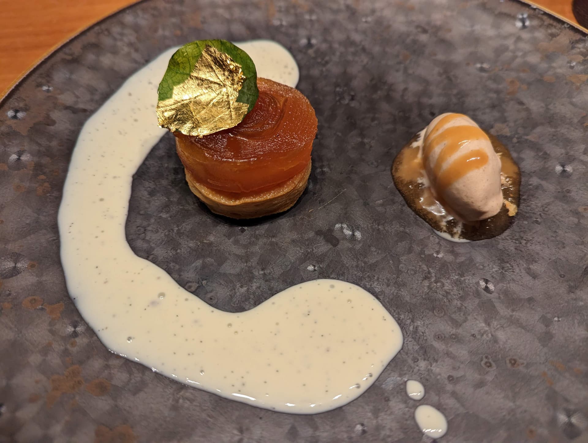 甜点里有反转苹果塔还是有些意外的,而且是美国常见的加了浓郁肉桂的口味。嗯平安夜吃苹果,没毛病。