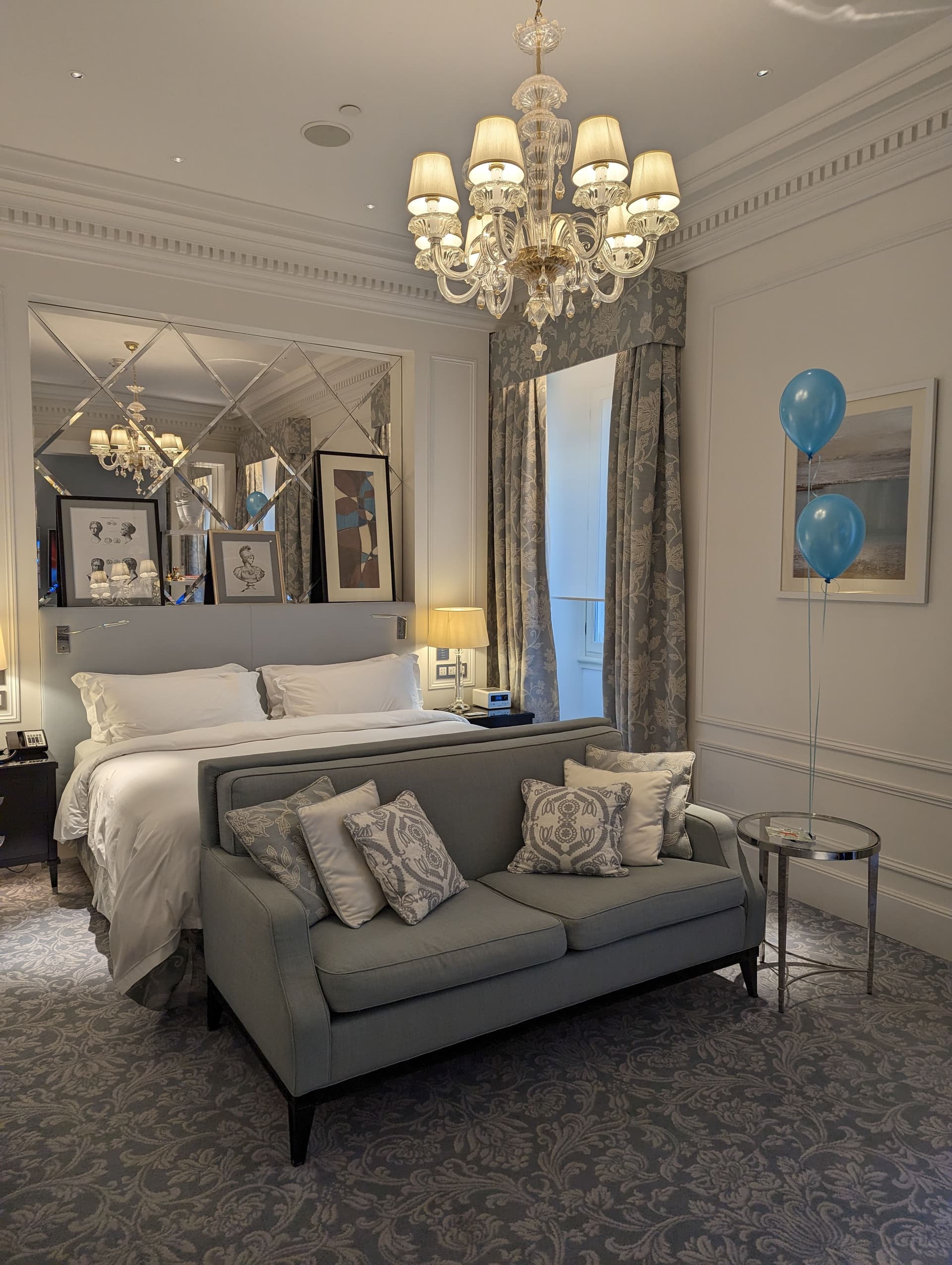 在制定行程的最初就定下了要住罗马瑞吉,烧了331K万豪分换了5晚,也正好用上积分房住五免一。提前发了邮件谈心,最后升了两级到Imperial Room,现金价2000+EUR。再往上就是套房了,这种时候不升也很正常。另外这边的酒店的积分房还要另收city tax,类似美国的resort fee,14欧一天,之前在威尼斯那家Hilton是10欧一天。