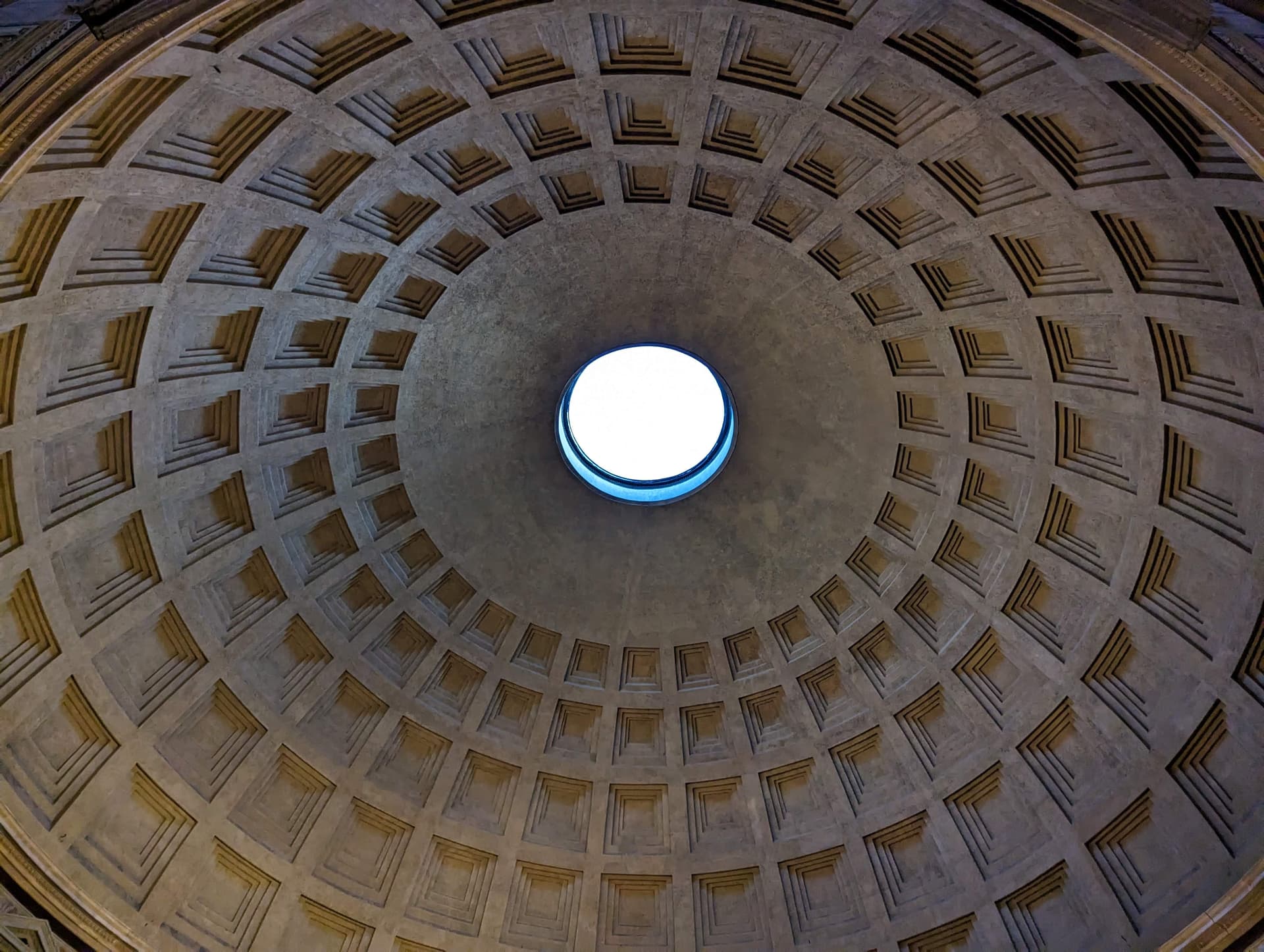 穹顶由混凝土浇注而成,可惜这样的技术在后来漫长的岁月里渐渐失传,直到近代被再次发明。先前看过的圣母百花大教堂的穹顶也是从这里学习而来。