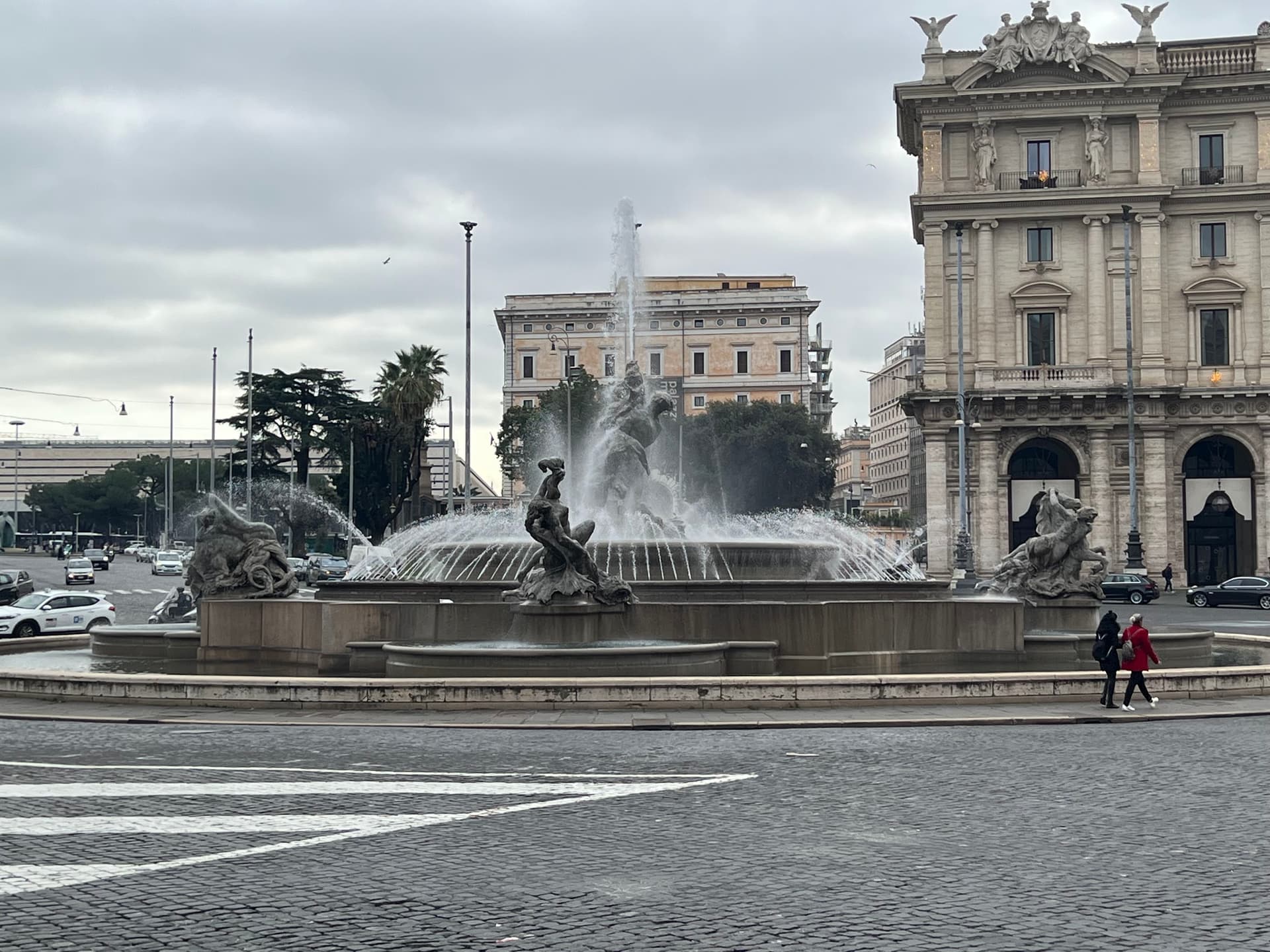 从Termini出来,步行十分钟就到。中间会经过共和广场,最近的地铁站也是这里(Repubblica),离Termini一站距离。罗马的地铁线路只有三条,大部分时间还是公交加步行。瑞吉附近步行5分钟内就有好几个公交站。也许是碰上节假日晚上班次少,每天傍晚开始公交车上就很拥挤。
