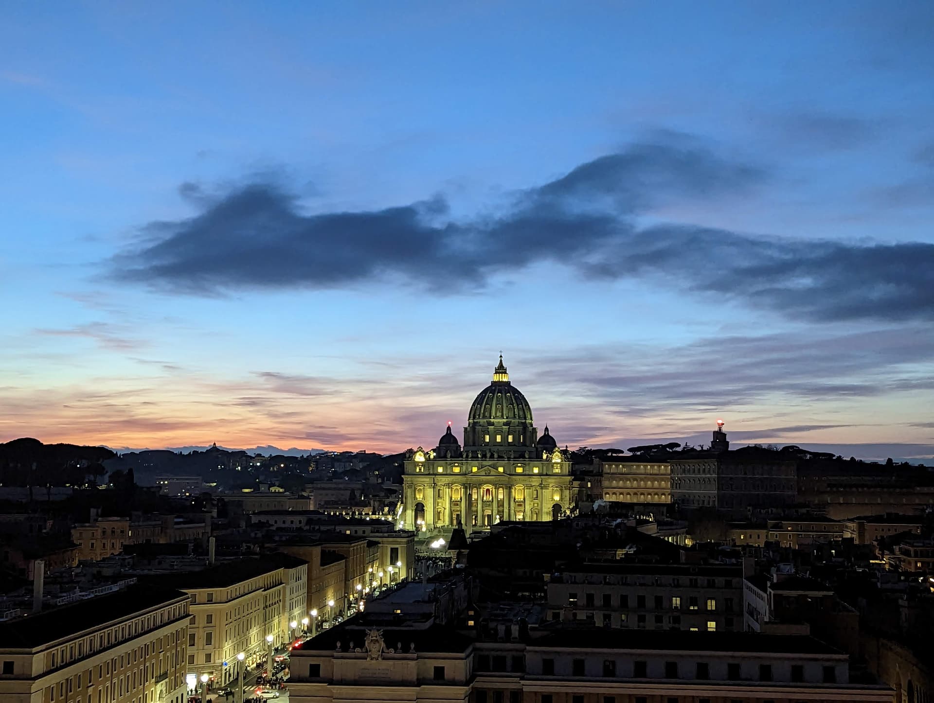 在楼顶可以看到不远处的圣彼得大教堂。