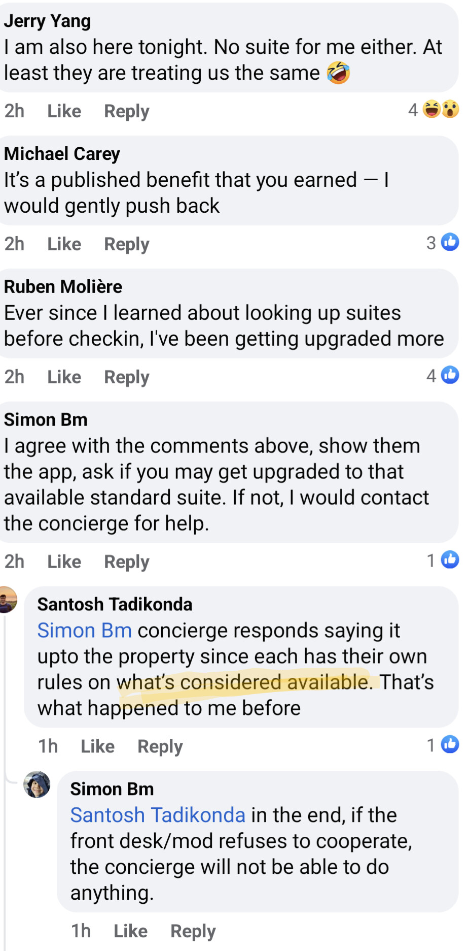 我的意思是没有一个常旅客项目能把免费升级的预期满足,反而调整预期、如果有能力购买满足预期的产品才会更愉快。