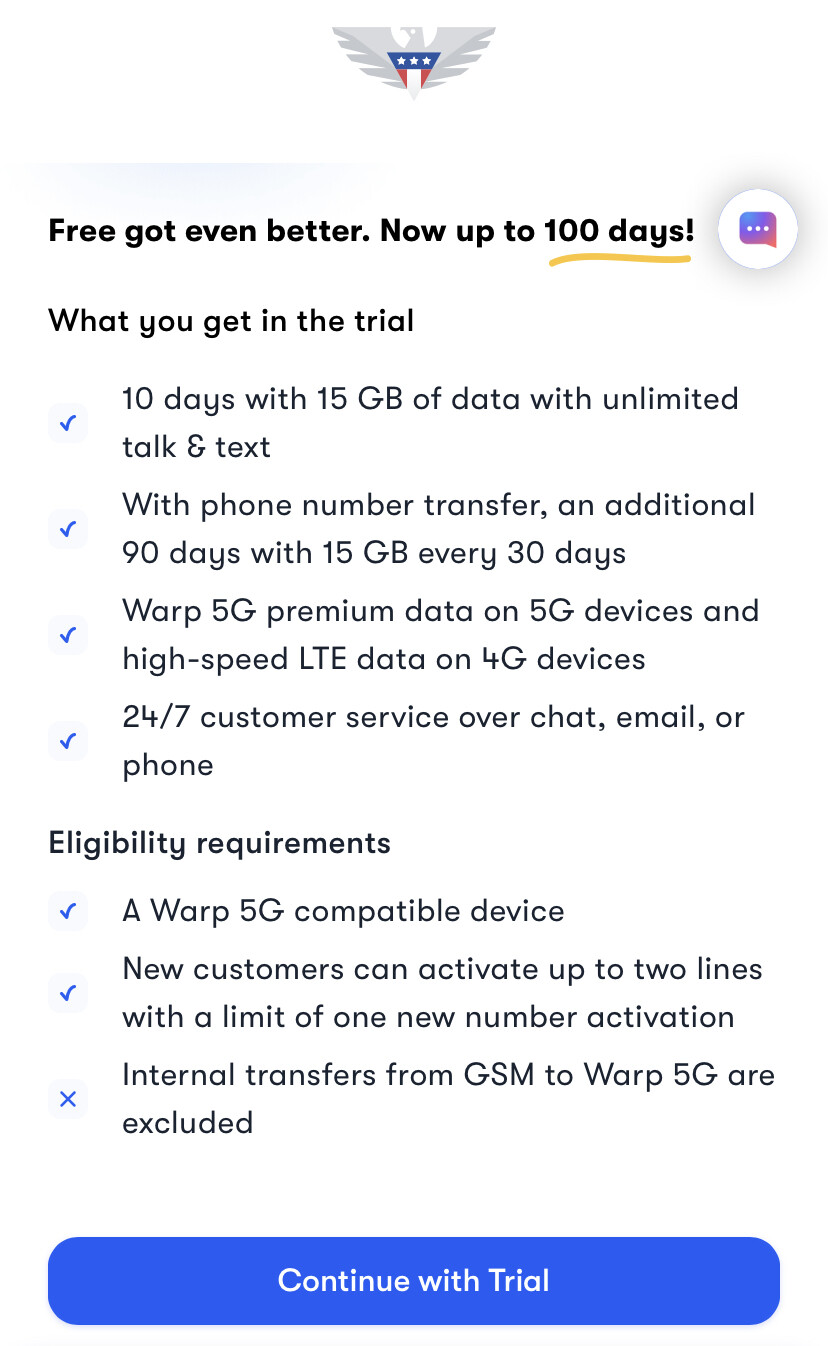 注册了一个账号,点free trial看起来需要一个Warp 5G compatible device才有100天?